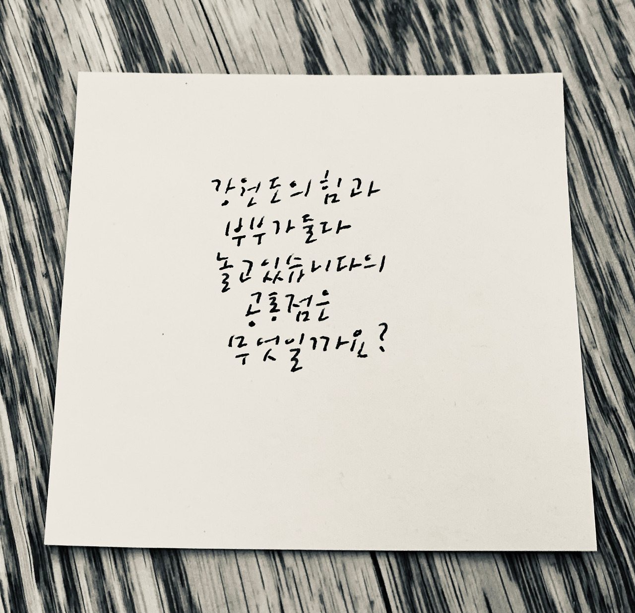 홍상수 감독의 영화는 내용과 형식도 새로웠지만 제목부터 남달랐다. 몇 년 전 그가 만든 영화 '지금은 맞고 그때는 틀리다'의 제목은 지금도 수많은 칼럼과 방송 멘트, 자막 등으로 활용되고 있는데 아마도 그 원조는 '강원도의 힘'이 아닐까 싶다. 오늘 아침에 일어나 뜯어먹은 풀무원 낫또의 이름은 '실의 힘'이었다(먹어본 사람은 이름이 왜 실의 힘인지 알 것이다). 물어볼 것도 없이 영화 '강원도의 힘'이 아니었으면 생겨나지 못했을 네이밍이다. 낫또뿐 아니라 지금도 마트에 가보면 '국산의 힘' 등 비슷비슷한 느낌의 힘 시리즈가 차고 넘친다. 그래서 홍상수가 그 영화 제목을 지을 당시의 상황을 상상해 보았다. 주변 사람들에게 강원도의 힘 어때?라고 물어보았다면 어떤 반응이었을까. 글쎄, 조금 이상하지 않아? 강원도에 무슨 힘이 있어. 아무래도 조금 이상한 것 같은데...라는 대답이 압도적이지 않았을까. 그래서 내린 결론은 '이 영화 제목은 분명히 홍상수 혼자서 지었을 것이다'였다.