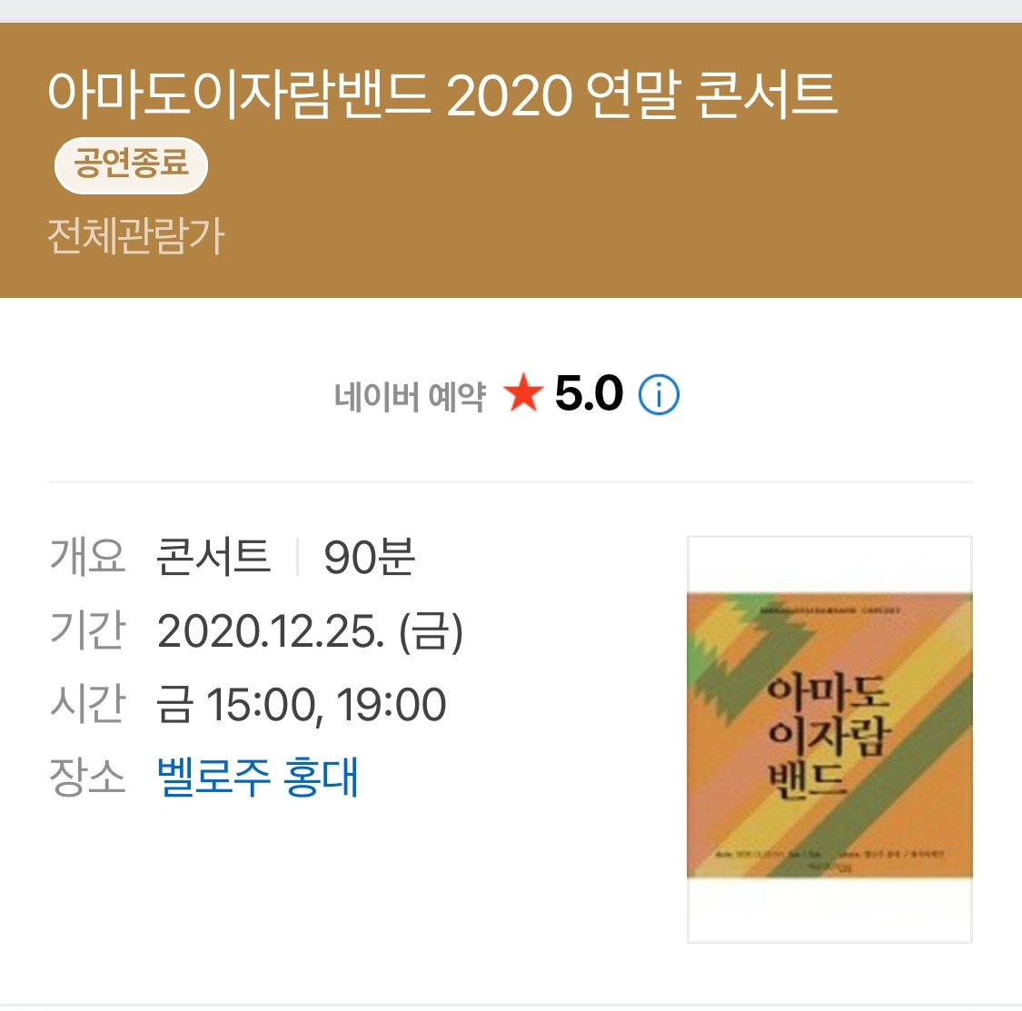 공연 후기 : 2020년 크리스마스 아마도이자람밴드