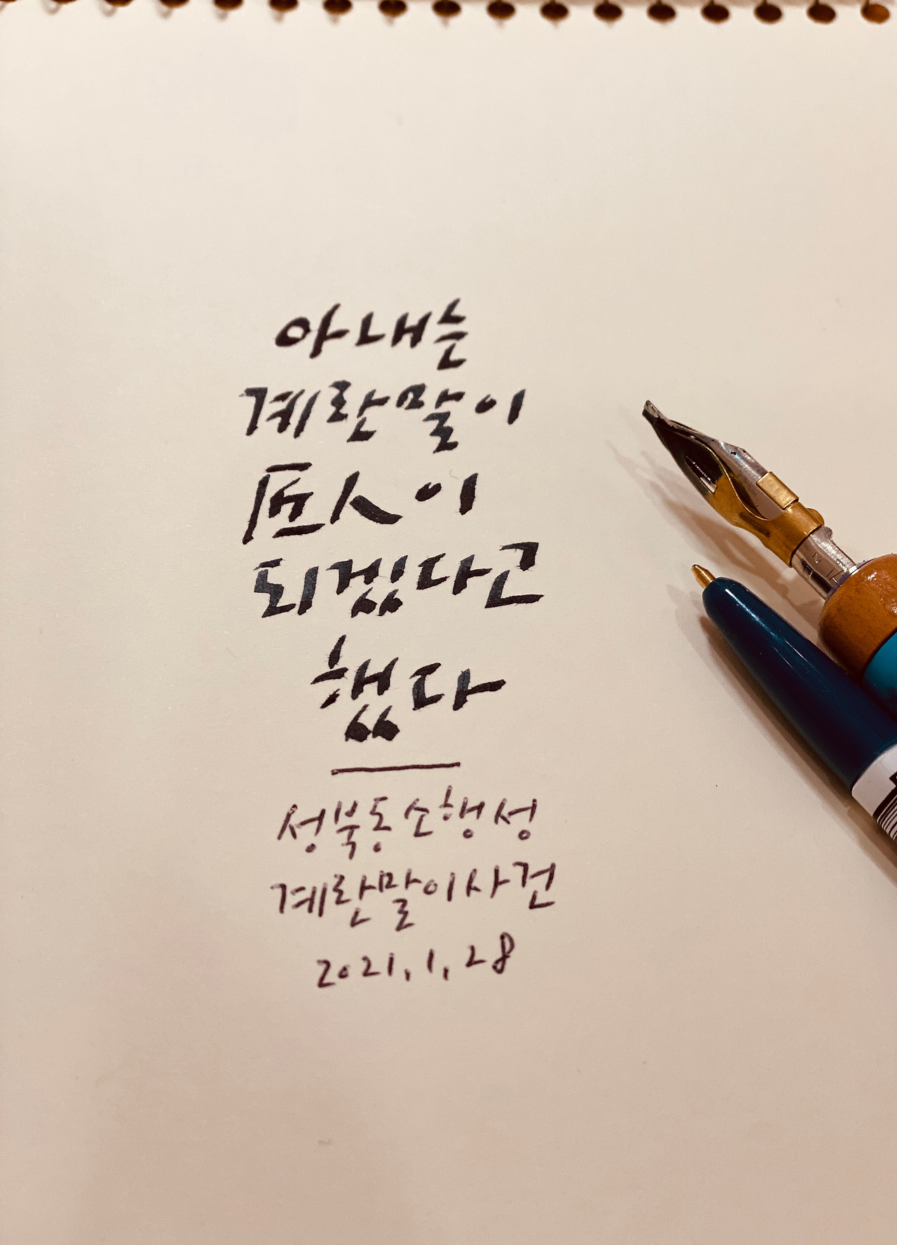 아내가 주물로 된 조그만 계란말이 팬을 하나 샀는데 모양이 하도 귀여워서 당장 계란후라이라도 부쳐보자고 졸랐다. 아내가 기름을 두르고 예열을 충분히 하겠다고 했으나 막상 계란을 깨서 부치니 그대로 들러붙어 버렸다. 길이 덜 들어서 그런 모양이다. '일단 이번엔 망친 걸로 치고 이왕 이렇게 된 거 매일 계란을 부쳐보자'라고 제안을 했더니 아내가 기가 막혀한다.