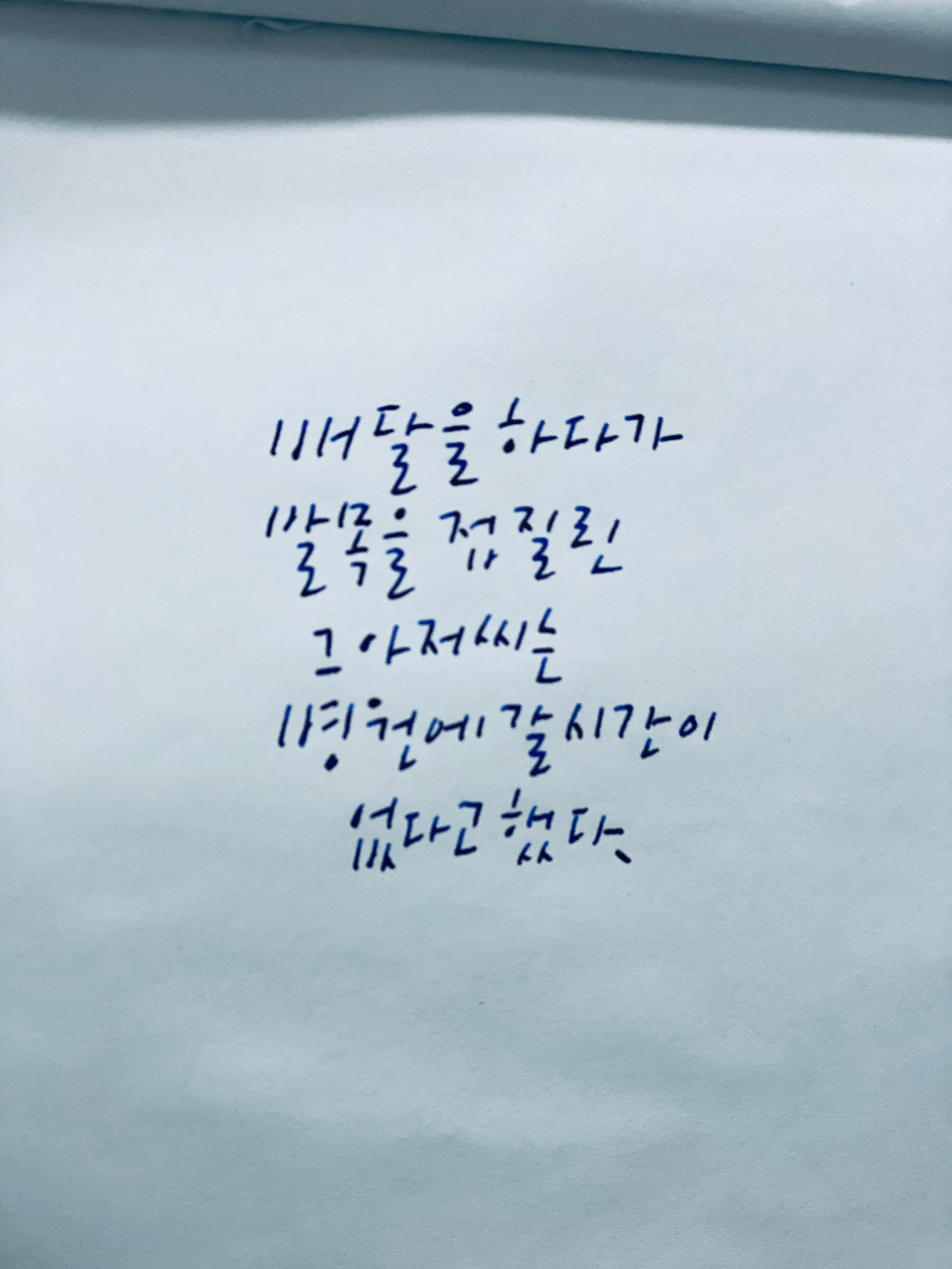 "그래도 가셔야 해요. 지금 안 가면 오래 고생하시는데. 요 한성대입구역 정형외과에 가서 반깁스라도 하세요."