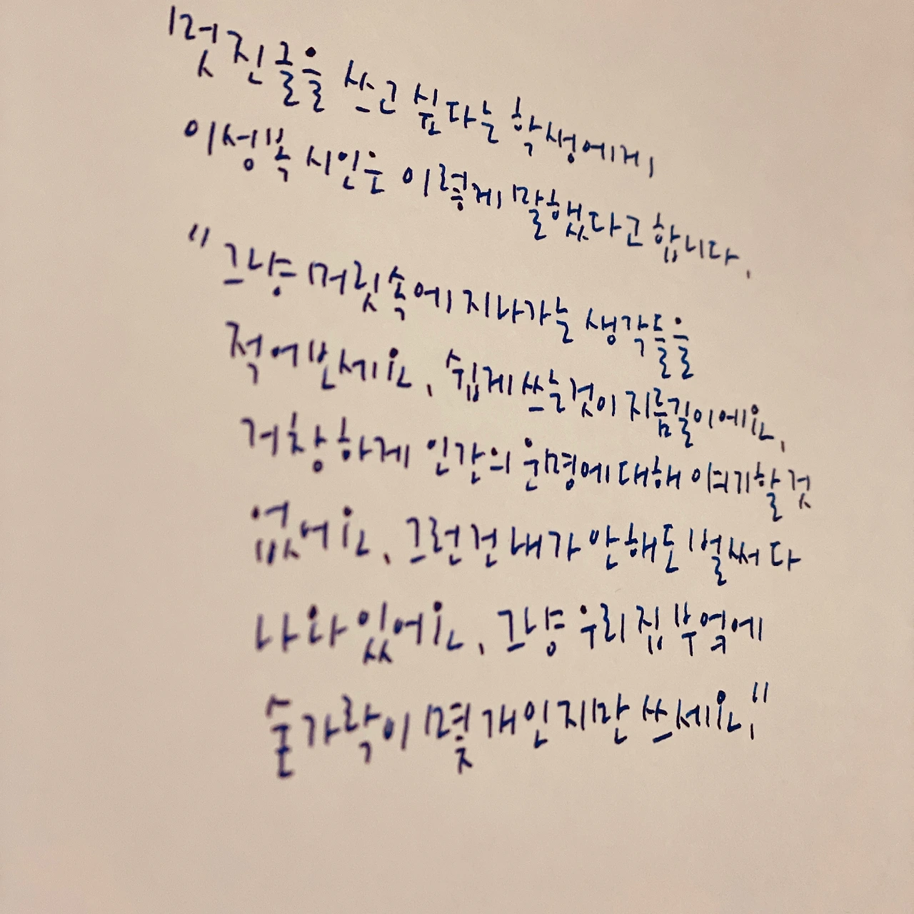 뭔가 쓸 게 있어서 아리랑도서관에 가서 책을 읽고 고민을 하다가 잠깐 쉬는 시간에 시 서가로 가보았더니 이성복 시인이 강의할 때 했던 이야기들을 뽑아 아포리즘 형식으로 만든 책이 한 권 있더군요. 이성복 시론 『무한화서』라는 책이었습니다. 무심코 책장을 넘기는데 거기에 이런 글이 쓰여 있었습니다.