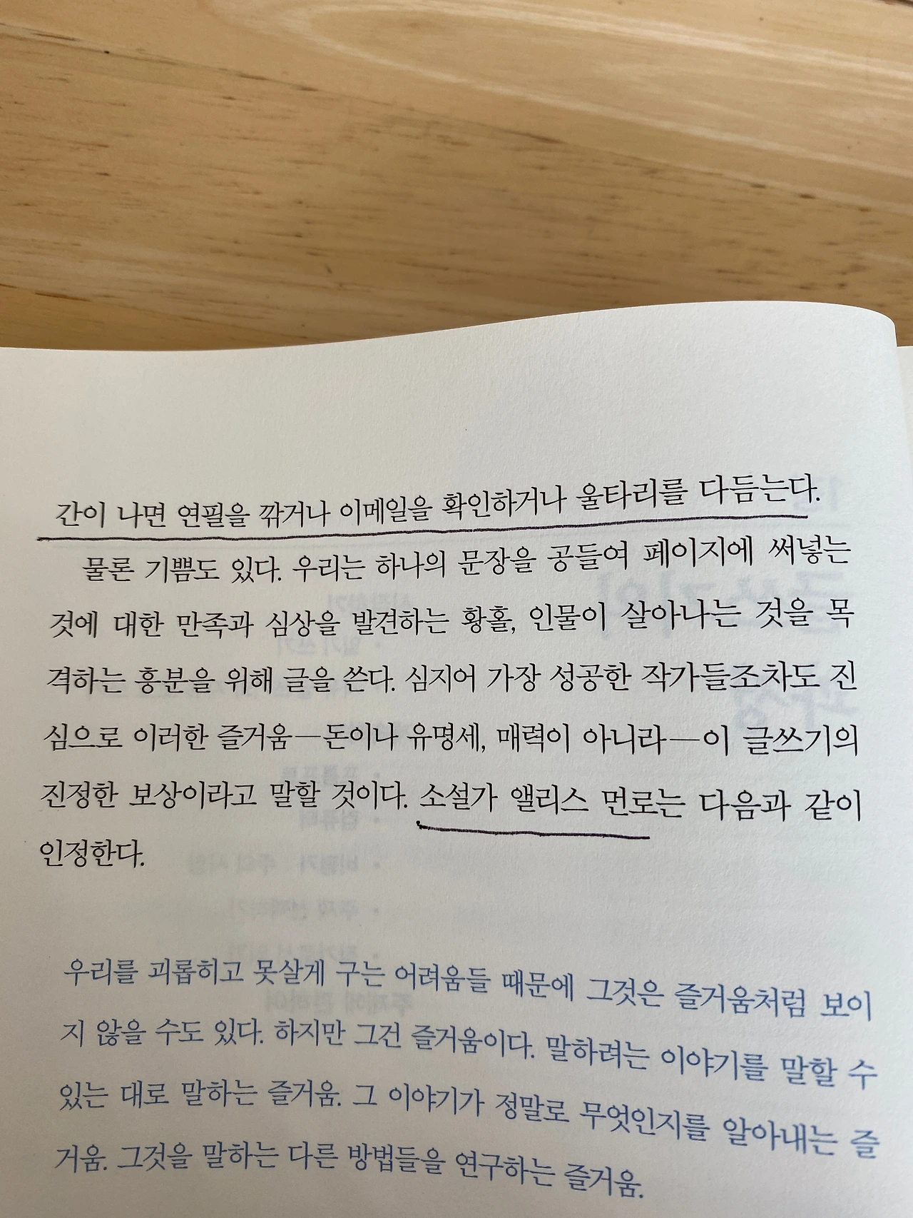 "시간이 없다고 불평할 때 우리는 묘한 죄책감에 사로잡히면서도, 막상 시간이 나면 연필을 깎거나 이메일을 확인하거나 울타리를 다듬는다." - 재닛 버로웨이