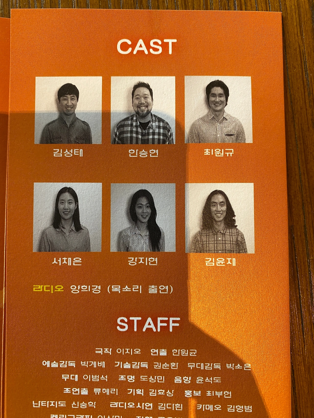 밖으로 나와 계단을 오르기 전 한원균 연출가처럼 보이는(머리카락이 하나도 없었다) 사람이 서 있길래 아내가 "연출님이시죠?"라고 물으니 그렇다고 해서 잘 봤다고 인사를 했다. 따뜻하고 재미도 있는 이 연극은 대학로 KFC 지하에 있는 '공간 아울'에서 3월 28일까지 상연한다. 놓치지 마시라. 참고로 오늘은 만석이었다.