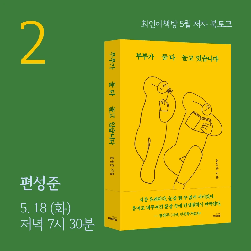 최인아책방 선릉점에서 북토크를 하게 되었습니다. 5월 18일 저녁입니다. 그 일주일 전엔 그곳에서 김탁환 작가의 북토크가 열립니다. 제 책의 추천사를 써주신 작가님과 같은 장소에서 북토를 하게 되다니, 제겐 영광스러운 일이죠. 저는 5월 11일 북토크도 신청해서 가볼 생각입니다. 많은 관심 부탁드립니다.