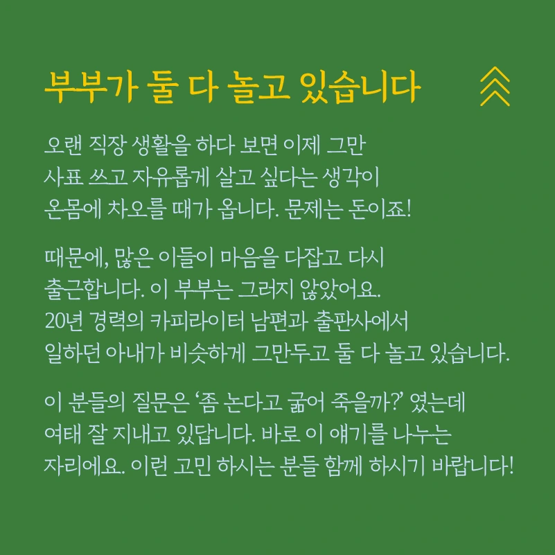 <부부가 둘 다 놀고 있습니다>로 이야기합니다