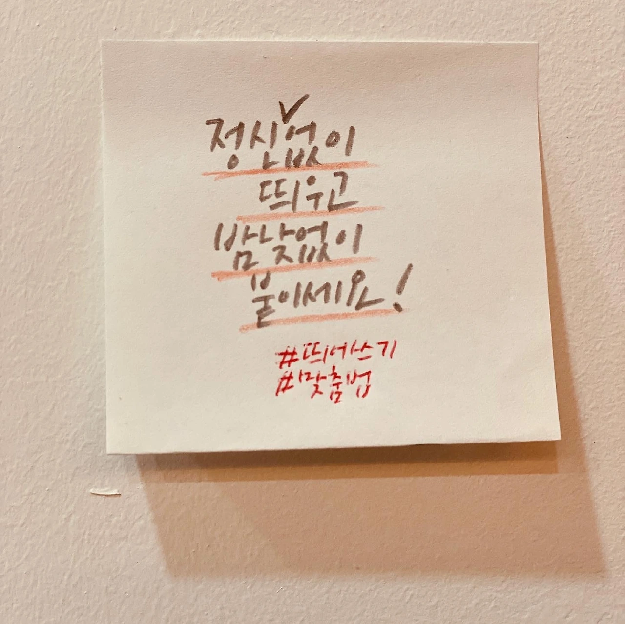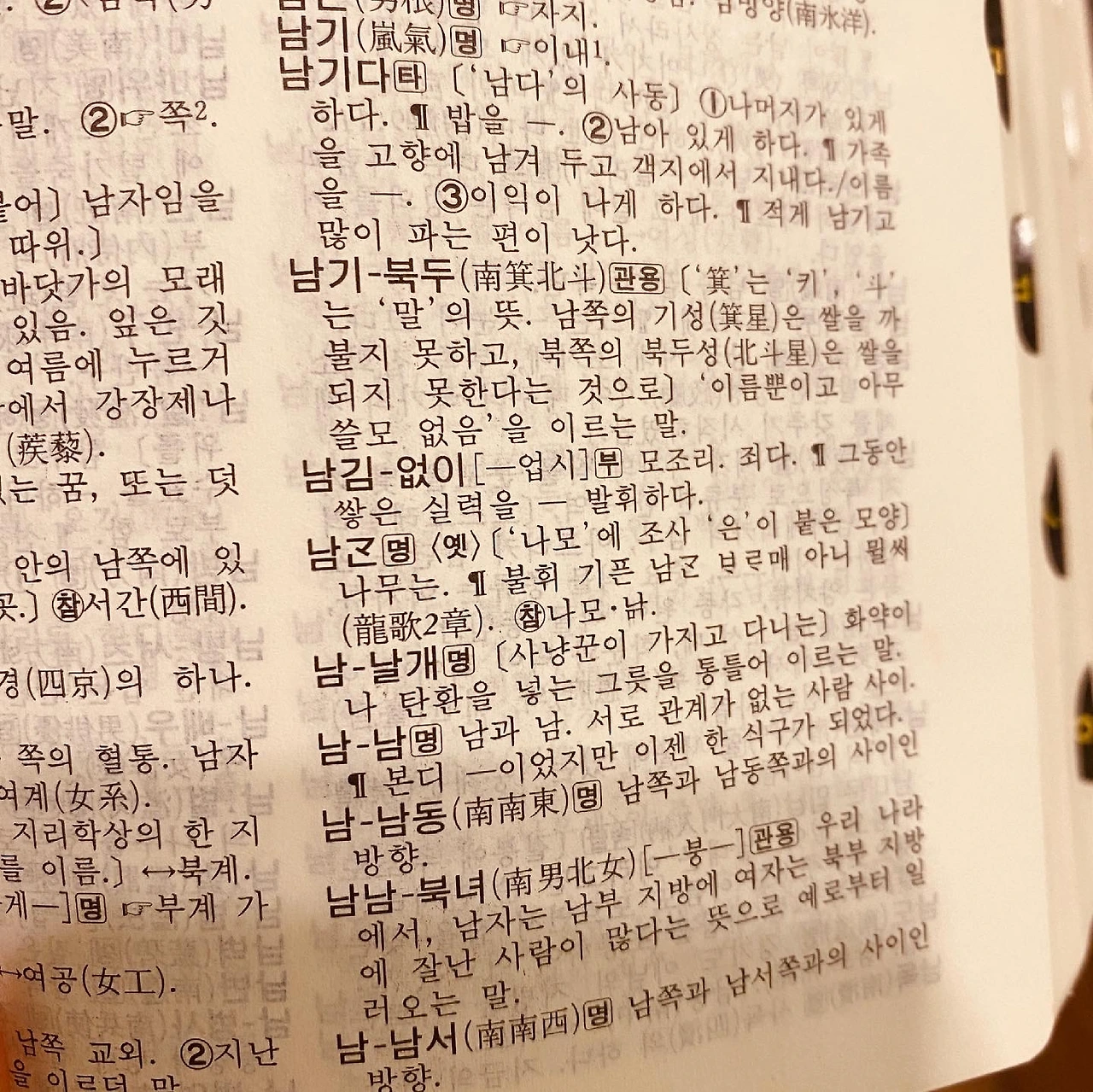 띄어쓰기는 정말 어렵죠. 뭔가 원고를 쓰다가 '정신 없이'라는 말을 쓰고 싶어서 띄어쓰기 검색을 했는데요, '소리 없이'는 띄어야 하고 '남김없이'이 붙여야 한다는 사실에 또 한 번 절망했습니다. 그런데 사전을 옆에 두면 조금 위로가 됩니다. '남김없이'나 '말없이' '밤낮없이'처럼 한 단어로 굳어진 단어들은 사전에 다 나오니까요. 이제 '사전에 등재되었다'는 게 무슨 뜻인지 알겠죠? 제가 촬영한 동아 새국어사전을 보세요. '남김-없이[-업시]'라고 돼 있죠? 아이, 그 위에 있는 남근 이런 거 보지 마시구요.