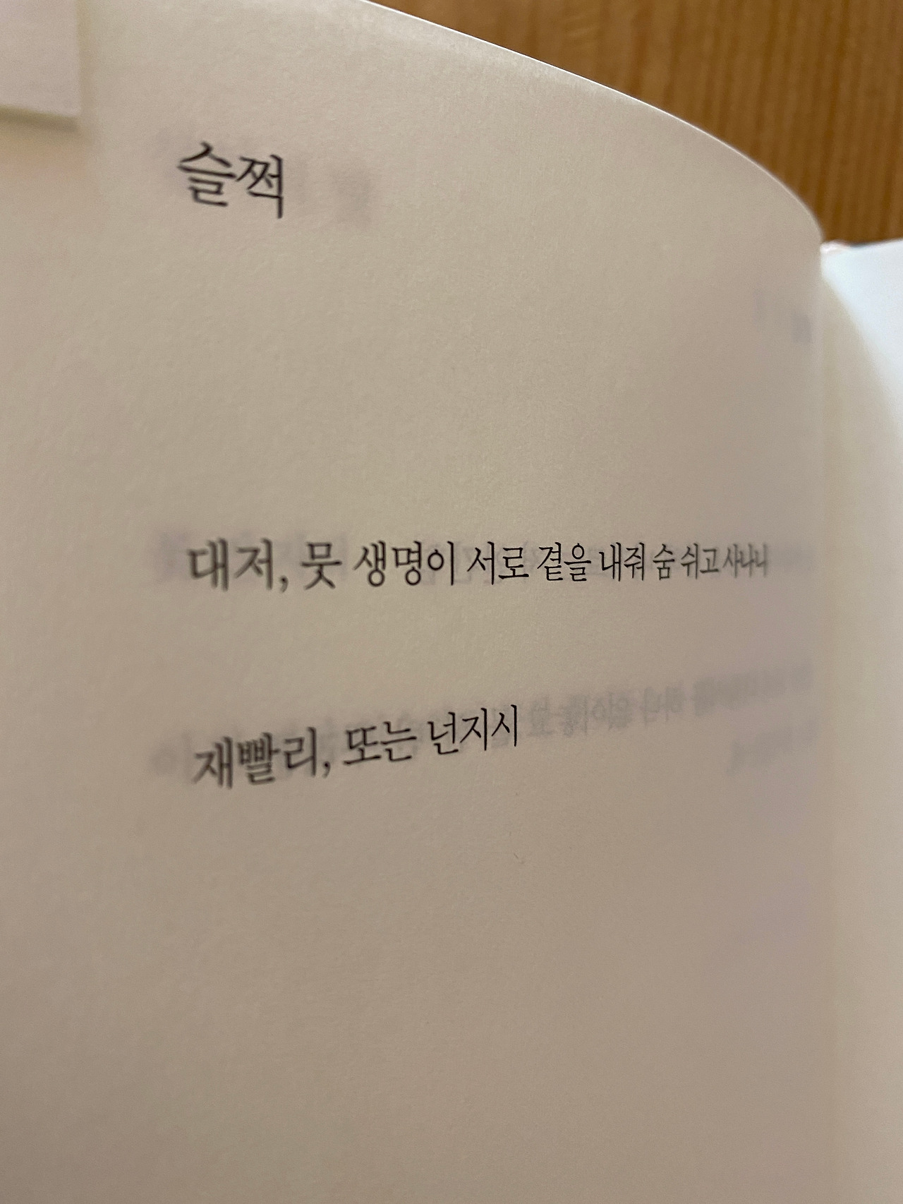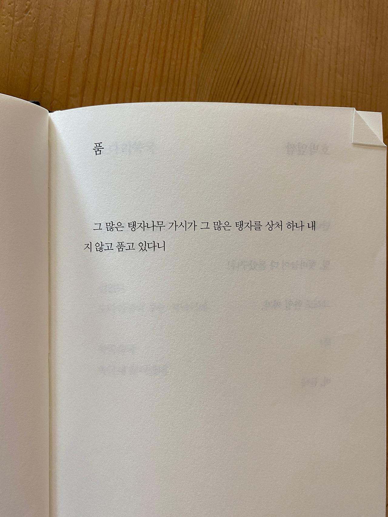 얇은 시집이 샤르르 넘어갑니다. 시도 다 짧아서 어린애 옹알이처럼 입 안에 다 담을 수 있습니다. 그러나 책을 덮고 나면 마음에 콕콕 찍힌 점 때문에 오래도록 잊히지 않을 것 같습니다. 이렇게 오인태를 감탄하는 저도 어느덧 약간은 시인이 된 것 같습니다.