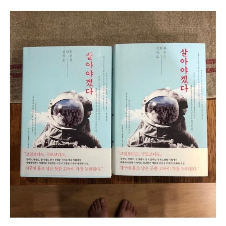 정부나 기관이 피해자를 돕기는커녕 오히려 인간 이하의 취급을 하는 이 기가 막힌 상황에 대해 이첫꽃송이는 '피해자이자 가해자'라는 말은 잘못된 인식이며 '몇 명을 감염시켰든 메르스 환자는 모두 피해자'라고 울부짖는다. 바로 그런 잘못된 인식 때문에 김석주는 격리변동에서 림프종 환자가 아니라 마지막 남은 메르스 발병자로 숨을 거두었던 것이다. 전염성이 전혀 없다는 것을 알고 난 후에도 보호장구로 중무장을 하고 집으로 찾아온 병원 직원을 보고 누구냐 묻는 다섯 살 우람이의 질문에 "아빠 친구 중에 안드로메다 우주인이 있는데..."라고 거짓말을 하는 남영아의 모습은 너무나 가슴이 아프다. '살아야겠다'라는 김석주의 간절한 희망과 '살려내겠다'라는 남영아의 처절한 저항이 우주복보다 더 두텁고 단단한 이 사회의 무관심과 두려움에 의해 사그러지고 마는 장면이다. 그래서 이 책의 표지에 우주복을 입은 사람이 등장하게 된 것이라고 북스피어 김홍민 대표는 말한다.