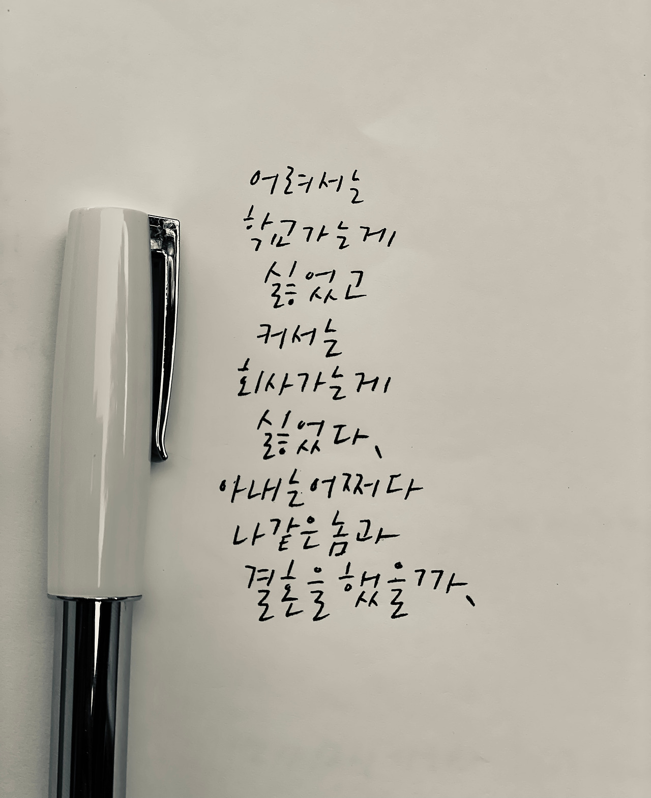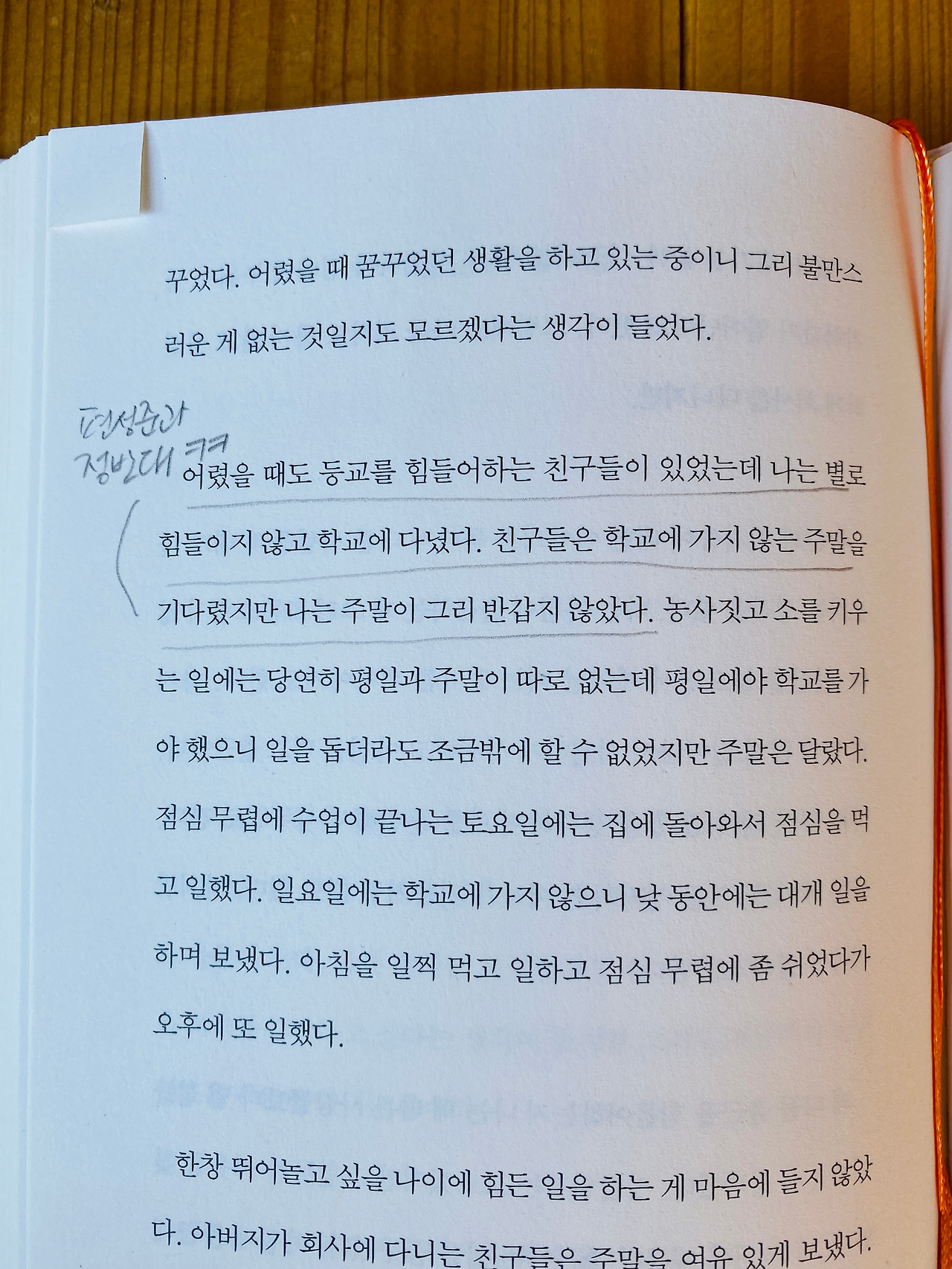 시골집에서 자랄 때 식구처럼 지내던 소에 대한 여러 가지 재미있고 따뜻한 이야기들을 담은 유병록 시인의 산문집 『그립소』를 읽다가 "어렸을 때 등교를 힘들어하는 친구들이 있었는데 나는 별로 힘들이지 않고 학교에 다녔다."라는 부분에 아내가 밑줄을 치고 '편성준과 정반대 ㅋㅋ'라고 써놓은 메모를 발견했다. 나는 초등학교 때부터 학교 가는 걸 죽도록 싫어했는데 여름방학이 끝나갈 무렵 TV 뉴스에 출연해 "빨리 방학이 끝나고 학교에 가서 선생님과 친구들을 만나고 싶어요."라고 말하던 놈을 죽이고 싶었다고 한 게 기억나서 써 놓은 모양이다.