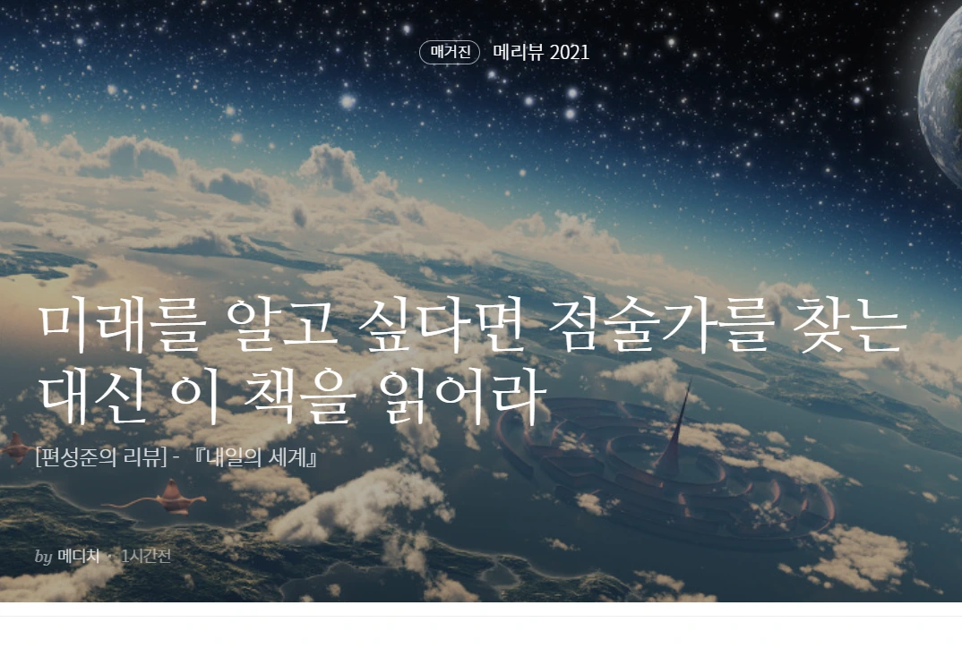 우리의 미래는 어느 방향으로 가야 할까요. 2021년이 한 달밖에 남지 않은 이 시기에 이 책을 꼭 읽으시기 바랍니다. 눈이 밝아지고 머릿속 안개가 걷힙니다. 이번 달 '부부 리뷰단'의 책은『내일의 세계』입니다. 이번 책은 부부가 둘 다 독후감을 쓰기로 했으므로 곧 제 아내의 글도 올라올 겁니다. 지금 브런치에 가서 작가 검색에 '메디치'를 처넣으시면 바로 읽으실 수 있습니다.