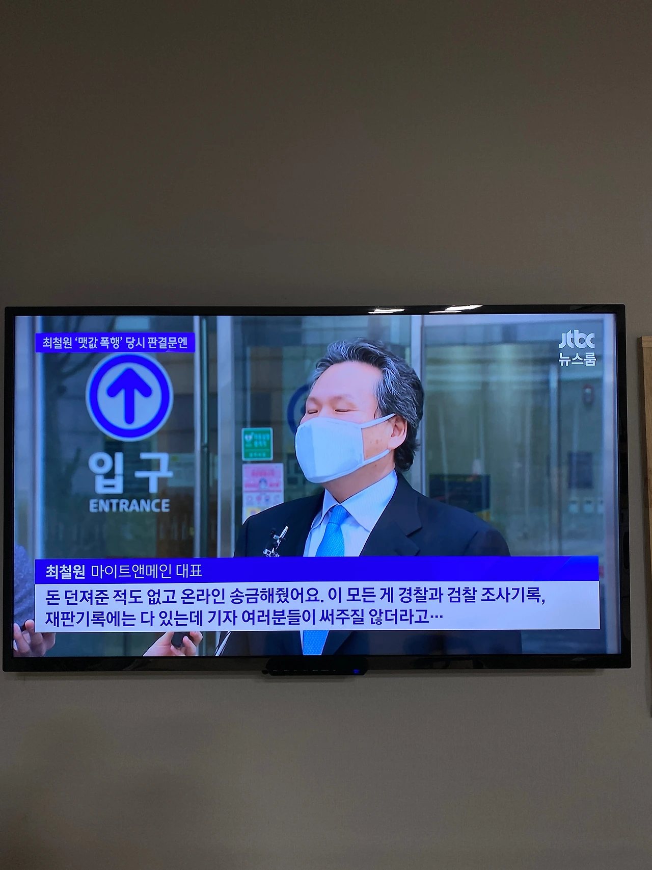 무거운 마음으로 저녁을 먹은 뒤 숙소로 와서 TV를 켜니 최철원 마이트앤메인 대표가 뉴스에 나와 자신은 억울하다는 입장을 밝히고 있었다. 그는 2010년 화물차량 기사를 때리고 '맷값'이라며 2천만 원을 건넨 혐의로 구속된 전력이 있다. 1심에서 징역 6개월을 선고받았고, 2심에서 집행유예를 선고받아 실형을 면했다. 영화 『베테랑』의 모델로 알려진 그는 취재진에게 “‘맷값 폭행’ 관련한 언론 보도는 85% 과장과 허구이고, 영화 ‘베테랑’도 95%는 과장과 허구”라고 주장했다. 맷값도 영화에서처럼 수표를 던져준 게 아니라 온라인 입금했다는 말도 덧붙였다.