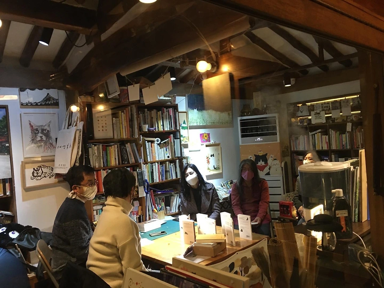 어제 성북동의 고양이 전문서점 '책보냥'에서 북토크를 했다. 장소가 좁고 작아서이기도 했지만 코로나 19 때문에 많은 분들을 모실 수 없어서 선착순으로 열 명만 모셨는데 사정이 있어서 못 오신 두 분을 제외하고는 모두 오셨다. 내 책을 낸 '행성B'의 이윤희 편집장도 오셨다. 이번 북토크는 동네 사람들끼리 책방에 모여 두런두런 책에 대한 얘기도 나누고 살아가는 얘기도 했으면 좋겠다 생각했는데 정말 그랬다. 겨우 여덟 분이라고는 하지만 동네에 사는 분도 있고 도보여행가, 연극배우, 회사를 그만둔 지 얼마 안 되는 청년, 덕소에서 책방을 준비하고 계신 분 등 다양한 사연을 가진 분들이 오셔서 나는 저절로 미소가 지어졌다. 책의 공저자인 아내 윤혜자가 내 얘기를 할 때마다 고개를 끄덕이며 "우리 남편도 그래요."라고 공감을 표하는 분 덕분에 모두들 웃었고 『부부가 둘 다 놀고 있습니다』를 세 번이나 읽었다는 분도 계셨다.