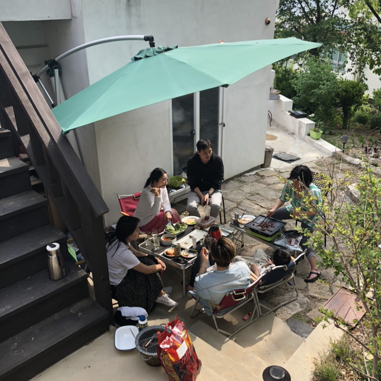 예를 들면 날씨 좋은 휴일에 무슨 핑계를 대서라도 마음에 맞는 사람들 몇 명을 우리집으로 초대하는 것이다. 같이 밥을 해 먹고 각자 가져온 와인을 따고 뒷마당에서 고기도 굽는 것이다. 어제가 그랬다. 아내는 장가르기를 한다는 명목으로 친구들을 불렀다. 단지 파라솔 하나를 쳤을 뿐인데도 뒷마당 그늘엔 모인 사람들 사이엔 웃음과 덕담이 끝없이 피어올랐다.