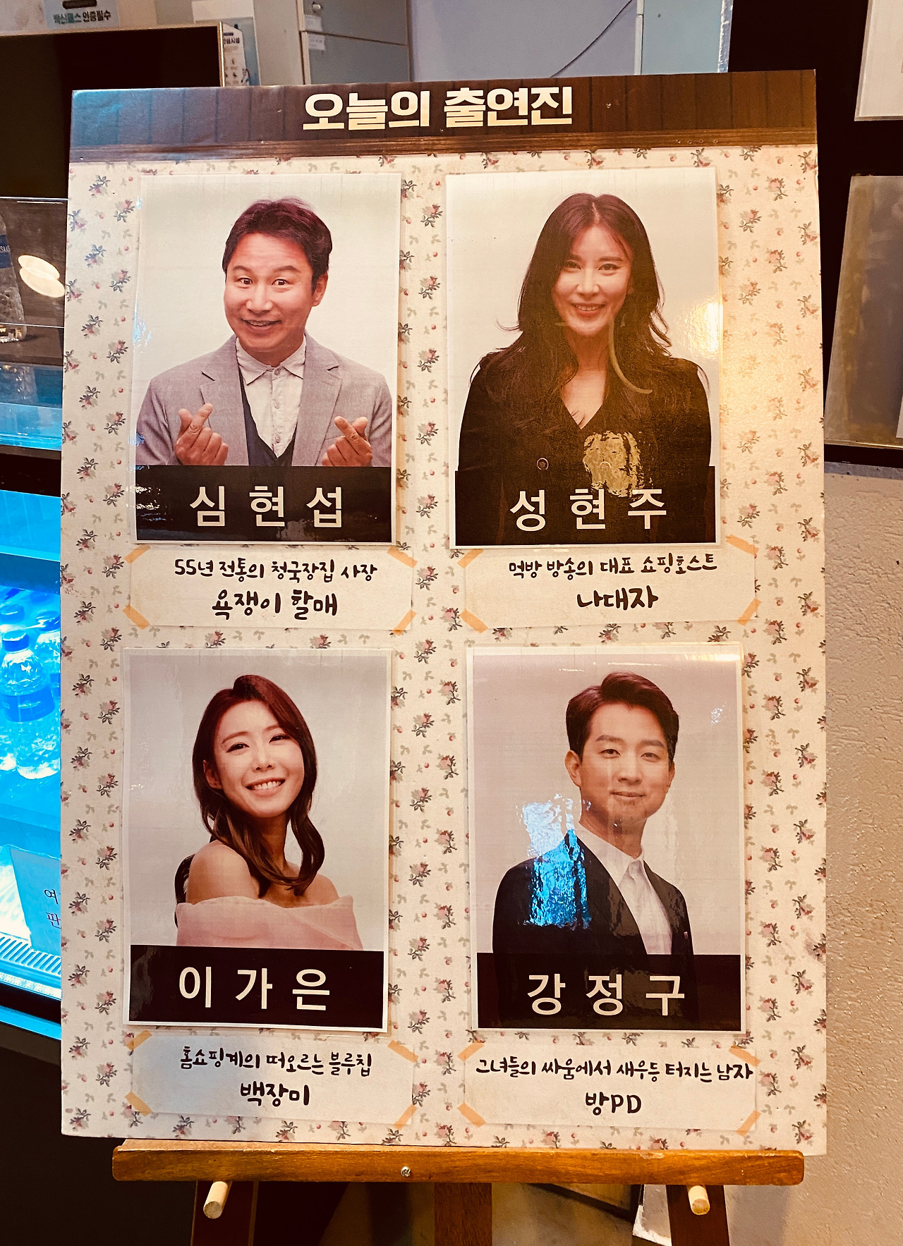 아내와 나는 코미디 연극보다는 정극을 좋아하는 편이다. 그런데 우리집에서 진행하는 '소행성 책쓰기 워크숍'의 멤버 개그우먼 성현주 씨가 코미디극에 출연한다고 해서 대학로에 있는 극장으로 갔다. 출연작은 《잇츠 홈쑈핑 주식회사》다. 100억 판매 기록을 보유한 쇼호스트 나대자가 위선적인 소비 생활을 들켜 위기에 처하자 홈쇼핑 제작진이 회장님의 단골집인 <옥떨메청국장>의 욕쟁이 할머니를 10주년 기념 방송에 출연시킨다는 게 극의 주요 내용이다.