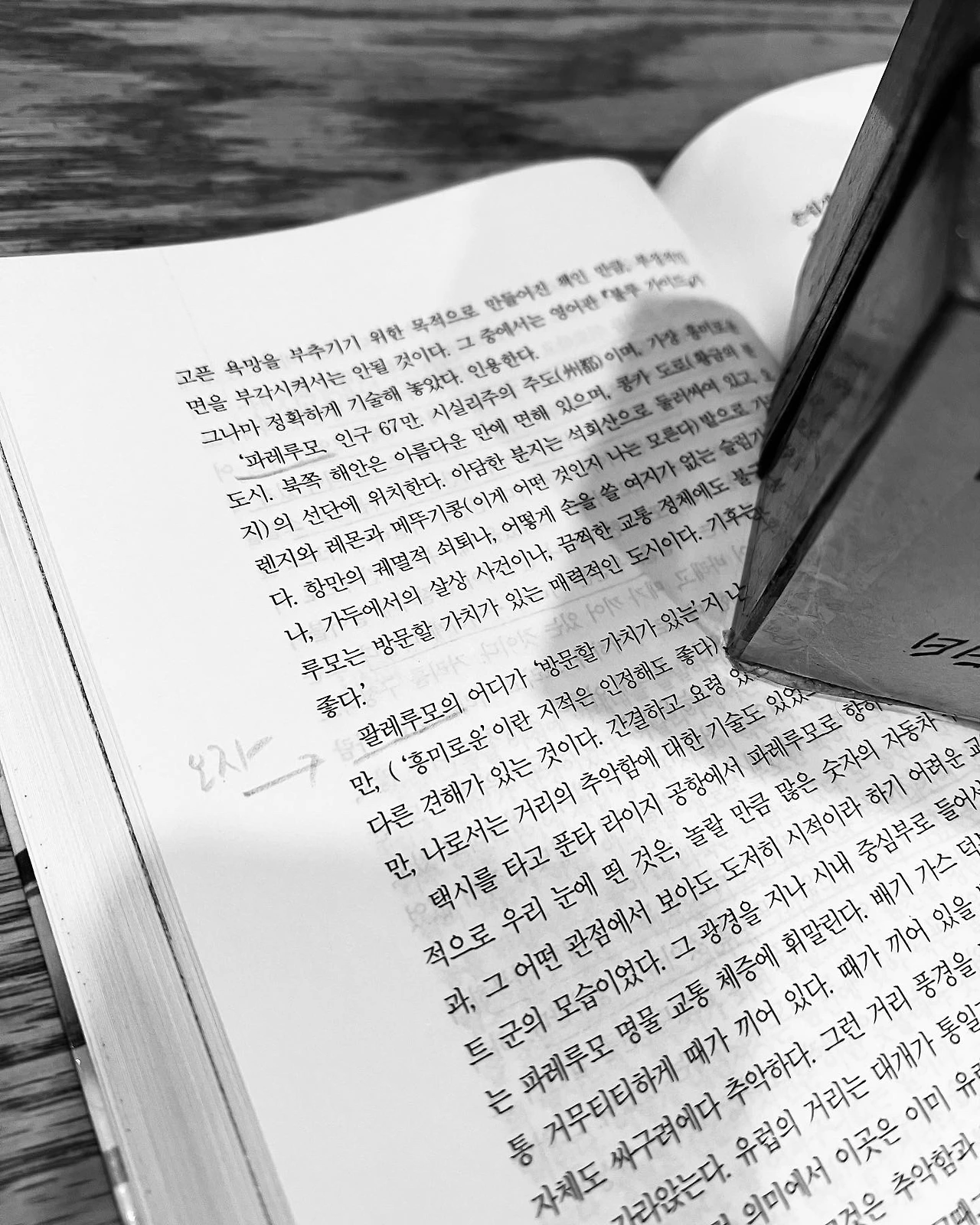도움이 되는 글이다. 책은 두 번째 읽을 때가 제일 좋은 것 같다. 아무 데나 펼쳐서 읽어도 되고 읽을 때마다 새로운 걸 발견하기 때문이다. 아, 오자도 하나 발견했다. 도시 이름을 파레루모라고 잘 쓰다가 딱 한 번 '팔레루모'라고 썼다(156P). 나는 쩨쩨하게 오자를 찾아내면서 기뻐하는 변태다.