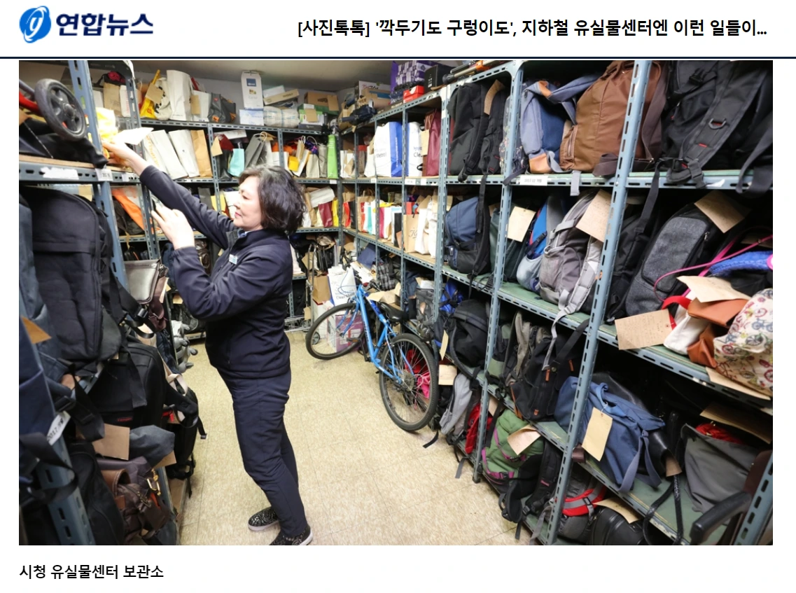 지하철 유실물센터 사진을 물끄러미 바라본다. 이토록 많은 물건들이 주인의 손을 떠나 창고에서 떨고 있다니. 그러나 보관실에 있는 물건들을 보면서 약간의 위로를 받는 것도 사실이다. 세상은 완벽하게 돌아가지 않는다. 사람들은 저마다 열심히 살고 있지만 어이없는 선택을 할 때도 많고 지갑이나 가방을 무시로 흘리고 다니기도 한다. 다 잃어버리더라도 아내라든지(나는 공처가니까 이해하시라) 소중한 가치 몇 개는 지키고 살자 마음먹은 월요일 오전인 것이다. 아, 이걸 쓰다 보니 벌써 오후가 되었다. 힘을 내자. 벌써 월요일 오전을 무찌르지 않았나. 월요일만 무사히 넘겨도 세상은 좀 살 만해진다.