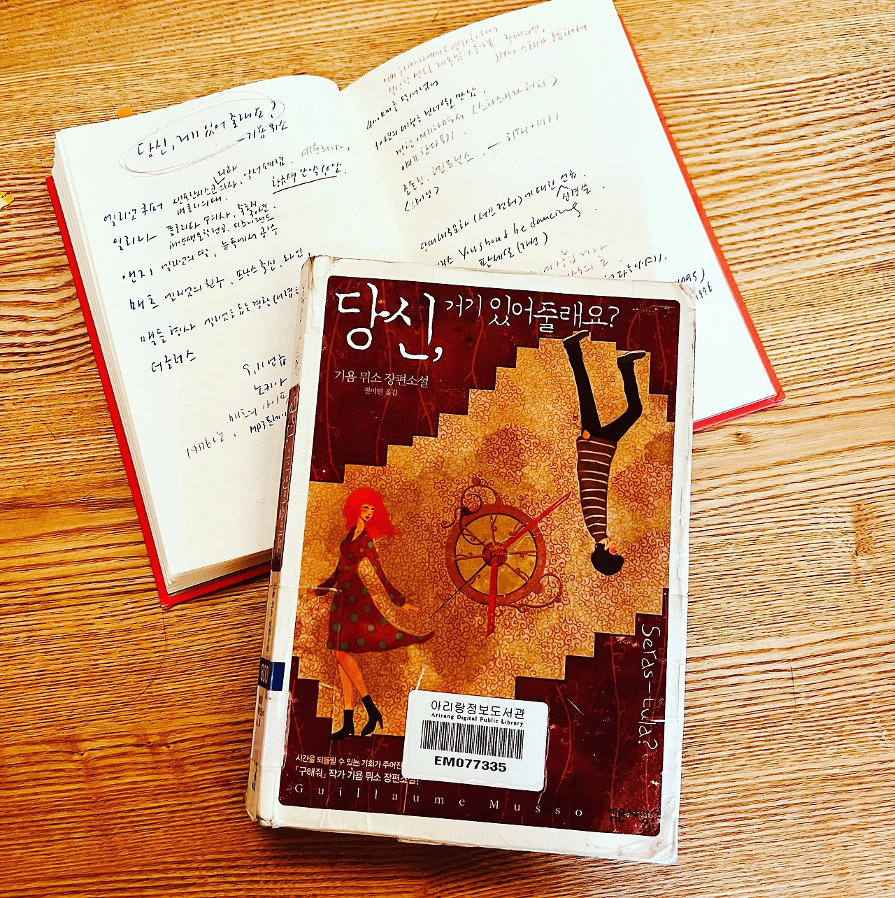 기욤 뮈소의 작품을 몇 편 읽었지만 우리나라에서 영화로 만들어진 『당신, 거기 있어 줄래요?』는 읽지 않고 있다가 아리랑도서관에서 충동적으로 빌려다 읽었다. 이미 우리나라에서 영화로 만들어질 정도로 제목이 익숙하지만 그만큼 식상하기도 해 언뜻 손이 안 갔던 작품이다. 읽는 도중 인터넷으로 찾아보니 드라마 《나인》의 모티브가 되었던 소설인데 그땐 판권을 팔지 않아 모티브만 빌렸고 이 작품을 영화로 만들려 연락했을 때는 마침 기욤 뮈소가 배우 김윤석의 팬이라 판권 판매에 동의했다고 한다. 역시 셀럽의 힘은 강하다.