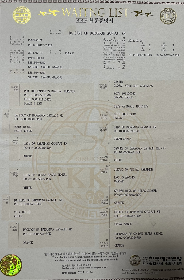 그리고 그 혈통서는 왜 1주일이나 지난 후에서 받을 수 있는 것인가? 새로 만들어야 하는 건 아니겠지요?