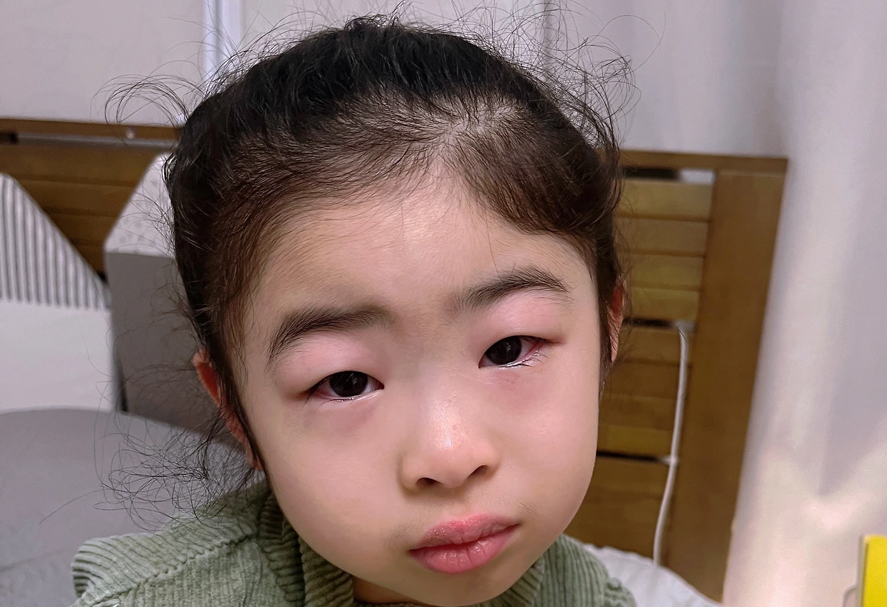 잘 놀다가 저녁에 보니 눈에 주먹만 하게 부어 있고, 눈곱이라고 하기에는 너무 이상한 고름 같은 게 눈에서 흘러나왔다.