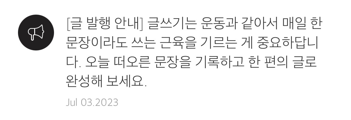 브런치를 시작하고 처음 받아보는 알림이다. 처음으로 2주 동안 글을 발행하지 않은 것이군.