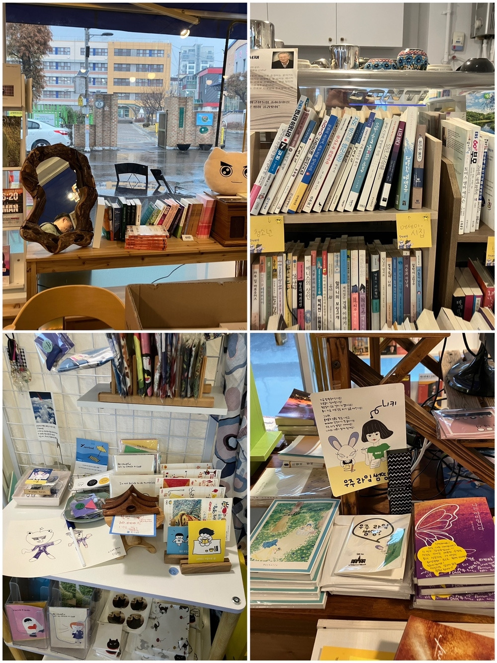 이곳은 위치상 학생들이 많이 오기 때문에 떡볶이 등의 분식류도 판매하고, '스탠딩 코미디' 같은 재미있는, 북토크 형식의 행사도 자주 열리고 있어요. 그래서인지 대표님의 미소가 여고생의 그것을 닮아있답니다.
