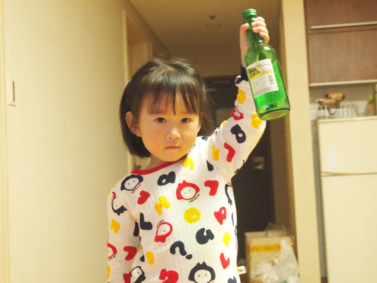 첫 번째 사진은 아이가 네 살 무렵, 우리 부부가 다른 커플과 함께 간 리조트에서 찍은 사진이다. 하루의 여행을 마치고, 어른들은 리조트 거실에서 술 한 잔에 도란도란 얘기를 나누고 있는 중이었다. 그 당시, 걷지도 못하는 아기였던 동생 외에 또래라고는 없던 상황이라 심심했던지, 딸아이는 계속 어른들 술판을 기웃기웃거렸다. 그 모습이 귀여워 내가 아이에게 제안했다.