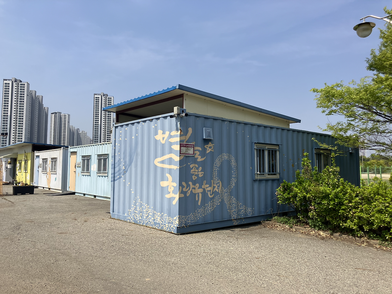 그러다 시야에 들어온 컨테이너 가건물들. 유가족들이 모여 함께 얘기를 나누고, 행사를 여는 이곳. 도시 변두리 황량한 곳에 버려진 듯 자리하고 있는 모습에, 지난 10년 우리 사회가 세월호 유가족들을 대하던 모습들을 되짚어보게 된다.