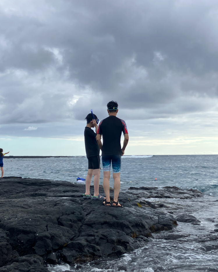 그렇기에 대부분의 바다 관련 물놀이는 내게 ‘간접체험’의 대상이다. 이번 하와이 여행에서도 예외가 아니었다. 짝꿍과 아들 녀석이 스노클링을 즐기는 동안, 나는 짐꾼을 자처하며 부자가 노는 광경을 지켜보는 것으로 대리만족해야 했다. 혹 이 글을 읽는 독자분 중 이쯤에서, '그럼 딸내미는 어디에...?'라고 생각하고 있는 이가 있다면, 세심한 관찰력을 지닌 분이라고 말씀드리고 싶다.
