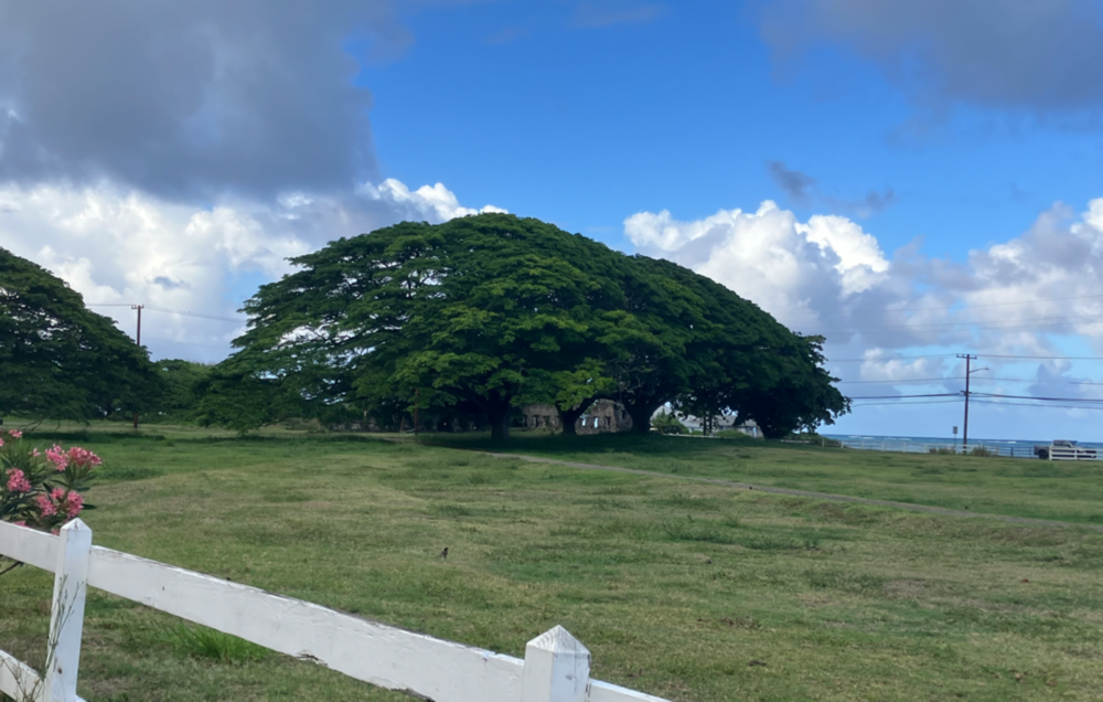 아직 문을 닫지 않은 기념품 가게를 구경하고, 주변의 자연을 천천히 거닐었다. 그러자 이제껏 하와이에서 보지 못했던, 소소하지만 흥미로운 장면들이 시야에 들어왔다. 야생수탉과 암탉이 밀당을 하는 모습, 종종종 뛰어다니는 병아리들을 이끌고 우리 앞을 지나가던 어미닭, 초록의 거대한 이불에 몸을 숨긴 채 비밀스러운 이야기를 키워가고 있는 것 같은 아름드리나무들이.