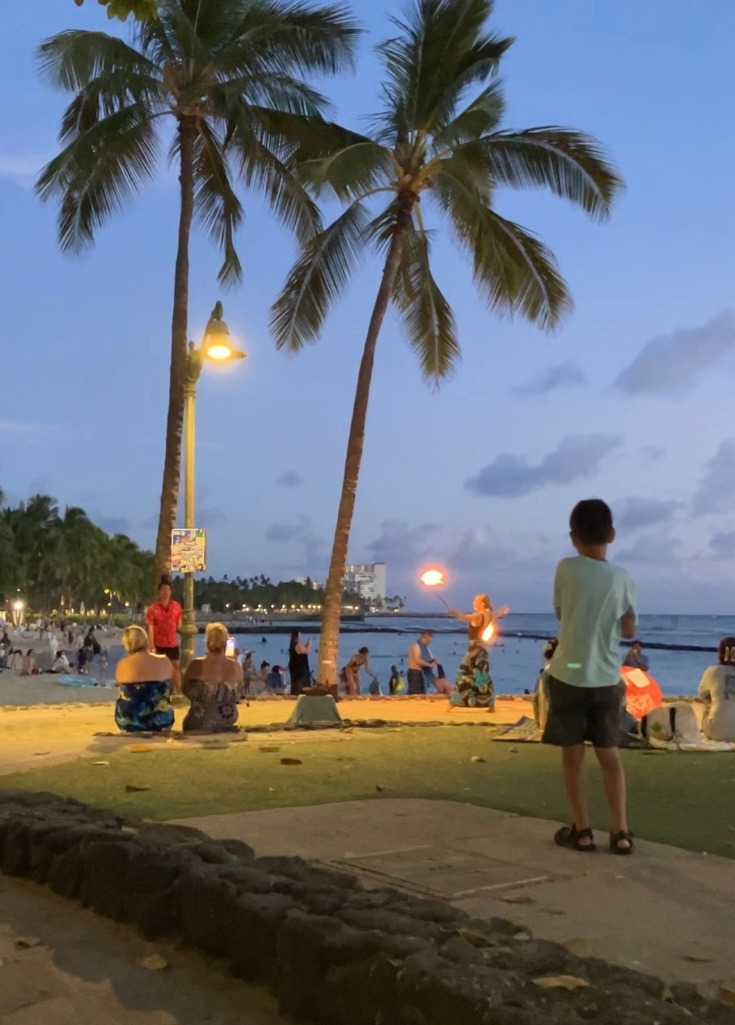 하와이에서의 마지막 시간은 느린 듯 빠르게 흘러갔다. 여행의 끝자락에서 맛보는 아쉬움이 밀려들던 시간, 우리는 마지막으로 와이키키 해변을 거닐다가, 마감 시간을 얼마 앞두고 돌아온 숙소의 야외 수영장에서, 은은한 조명을 배경 삼아 평화로운 마지막 밤을 즐겼다.