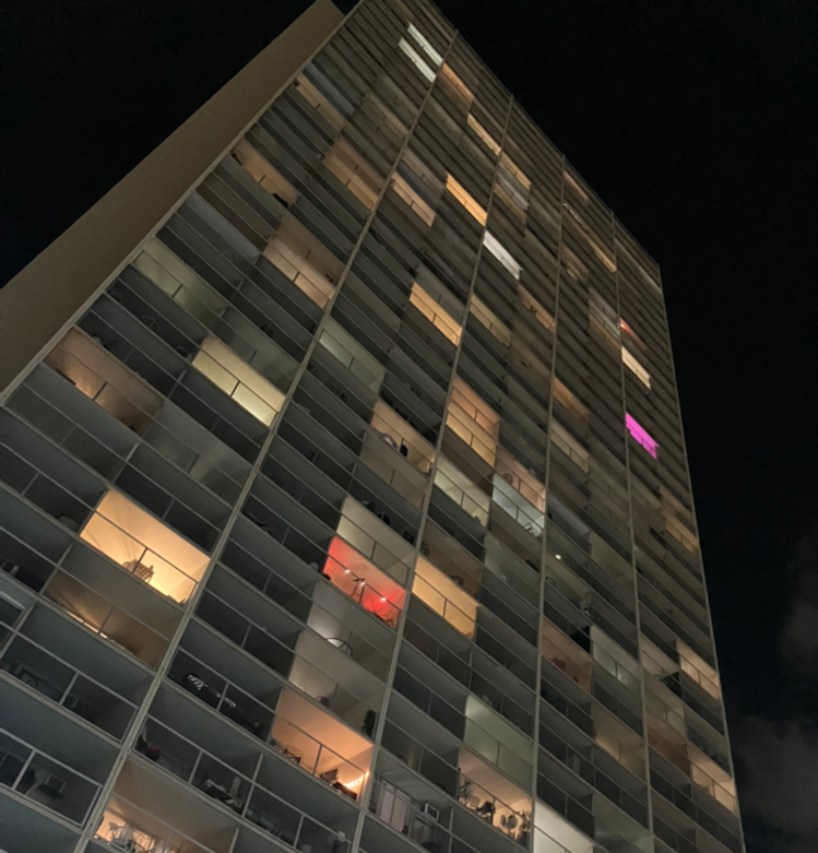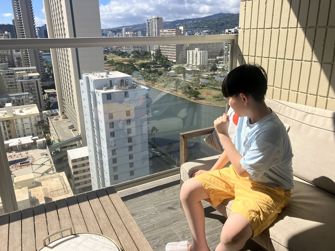 일찍 잠자리에 들 줄 알았지만, 마지막이라는 아쉬움 때문인지, 집으로 돌아갈 설렘 때문인지, 여느 때와 달리 이불을 박차고 나와 숙소를 거닐던 사춘기 딸내미와, 실내 수영을 즐기고 숙소의 밤풍경을 감상하며 들떠 있었던 나머지 세 가족은, 마지막으로 ABC 스토어에서 사 온 음식 거리들을, 호놀룰루의 밤이 내려다보이는 테이블에 잔뜩 늘어놓은 채, 뜻하지 않은 캠프 파이어를 벌이게 되었다. 학교 수련회의 마지막 날 떠들썩하게 펼쳐지는 그것에 비하면 평화롭기 그지없었지만.