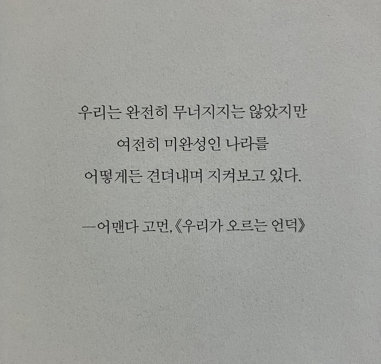 우리 사회가 제 아무리 튼튼한 시스템을 갖추고 있다 하더라도, 지금의 극단적 상황이 이어진다면 결국 민주주의 시스템 전반이 완전히 무너져버리고 말 것이다. 여전히 '미완성’인 나라는 어떻게든 지켜보며 견뎌낼 수 있겠지만, 민주주의의 근간이 뿌리째 뽑혀 무너지는 형국이 되면 과연 버텨내는 것이 가능할지 의문스럽다. 만에 하나 그런 시대가 도래한다면, 국민의 대다수가 ‘디아스포라'가 되어 전 세계를 떠돌게 될지도 모를 일이다. 내 조국이 결코 그런 상황을 맞지 않기를, 전광훈식 극단적 소수의 극우적 발상에 지배받는 나라가 되지 않기를 간절히 바라는 마음으로 책의 마지막까지 읽어 내려갔다.
