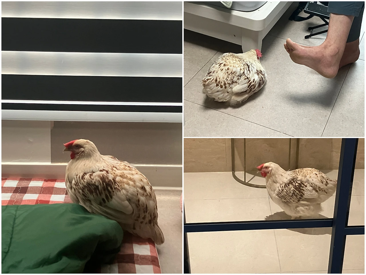 아파트에서 생활하는 김치는 성장과정에서 오른 발가락 중 하나가 기형적으로 굽기 시작했고, 현재는 가운데 발가락이 거의 구십도 각도로 꺾여있는 상태다. 본디 자연의 흙이 삶의 터전이어야 할 닭이기에 인간에게 맞춤형으로 지어진 아파트의 매끄러운 바닥은 어쩌면 우리가 생각하는 이상으로 힘들고 거친 환경이어서, 거기에 적응하기 위해 김치의 발이 그렇게 굽은 것일 테다. 그러나 김치는, 후천적 장애에도 불구하고, 그동안 우리의 걱정을 불식시키며 꿋꿋하고도 씩씩하게 아파트에서의 동거생활을 이어왔다. 일상에 지치거나 찌들어 어깨가 처질 때면 생각지도 못한 행동으로 사람 가족에게 크나 큰 웃음을, 그로 인해 싹트는 행복을 안겨다 주며.