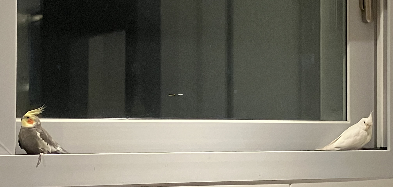 아가새들을 위한 보금자리를 어떻게 준비할까, 설레는 마음으로 상상해 볼 여지조차 주지 않으려는 듯 둘은 한 공간에 함께 있는 것조차 기꺼워하지 않는 눈치다. 창틀에 자리 잡는 것을 좋아하는 녀석들은, 어쩌다 우연히 같은 창틀에 앉게 되더라도 한 녀석은 이쪽 끝, 다른 녀석은 저쪽 끝에 서로 얼굴도 보고 싶지 않다는 듯 등을 돌리고 앉아 있다. 치열하게 싸운 후 오랜 냉각기를 거치고 있는 커플인양.