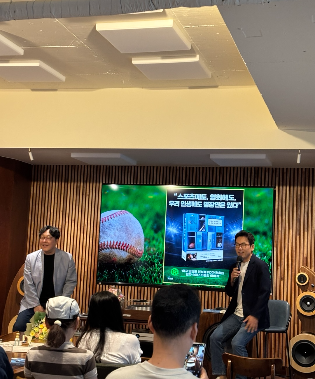 예전에 애청하던 K본부의 ‘역사저널 그날’에서 좋은 활약을 보여주었던 이광용 아나운서의 진행도 훌륭했지만, 무엇보다 이번 북토크에서는 독자로서 더욱 친근하게 저자를 마주할 수 있었다는 사실이 좋았고, 평소 별 관심을 두지 않던 스포츠 이야기가 귀에 쏙쏙 들어와 나의 ’열정 세포‘를 자극했다는 점이 흥미로웠다. 그만큼 저자의 글은 스포츠를 잘 모르는 이도 쉽고 재미있게 접근할 수 있게 쓰여 있다. 게다가 잠시도 지루할 틈 없이, 책 한 권을 거의 통독한 느낌이 들 정도로 세심하게 책의 내용을 짚어 주며 진행된 북토크가, 스포츠와 영화에 대한 지식과 흥미를 순식간에 넓혀주는 듯했다. (이석재 작가는 대중음악에도 조예가 깊어 현재 음악과 관련된 이야기도 부런치에 부지런히 연재하고 있는 중이니, 그의 방식으로 흥미롭게 엮어 낸 음악 이야기를 책으로 접할 날도 머지않은 듯하다.)