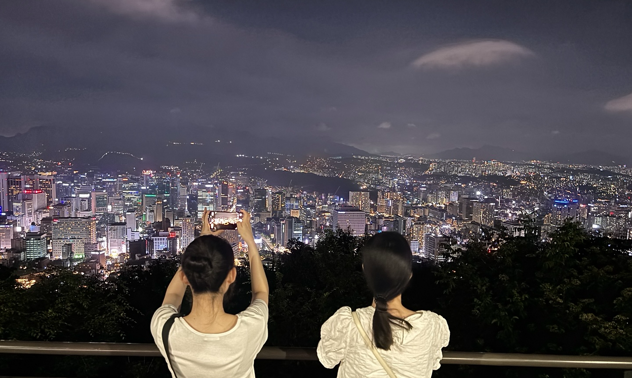 "케이팝 데몬 헌터스에 남산타워 나오잖아. 요즘 관광지로 아주 인기가 좋대!"