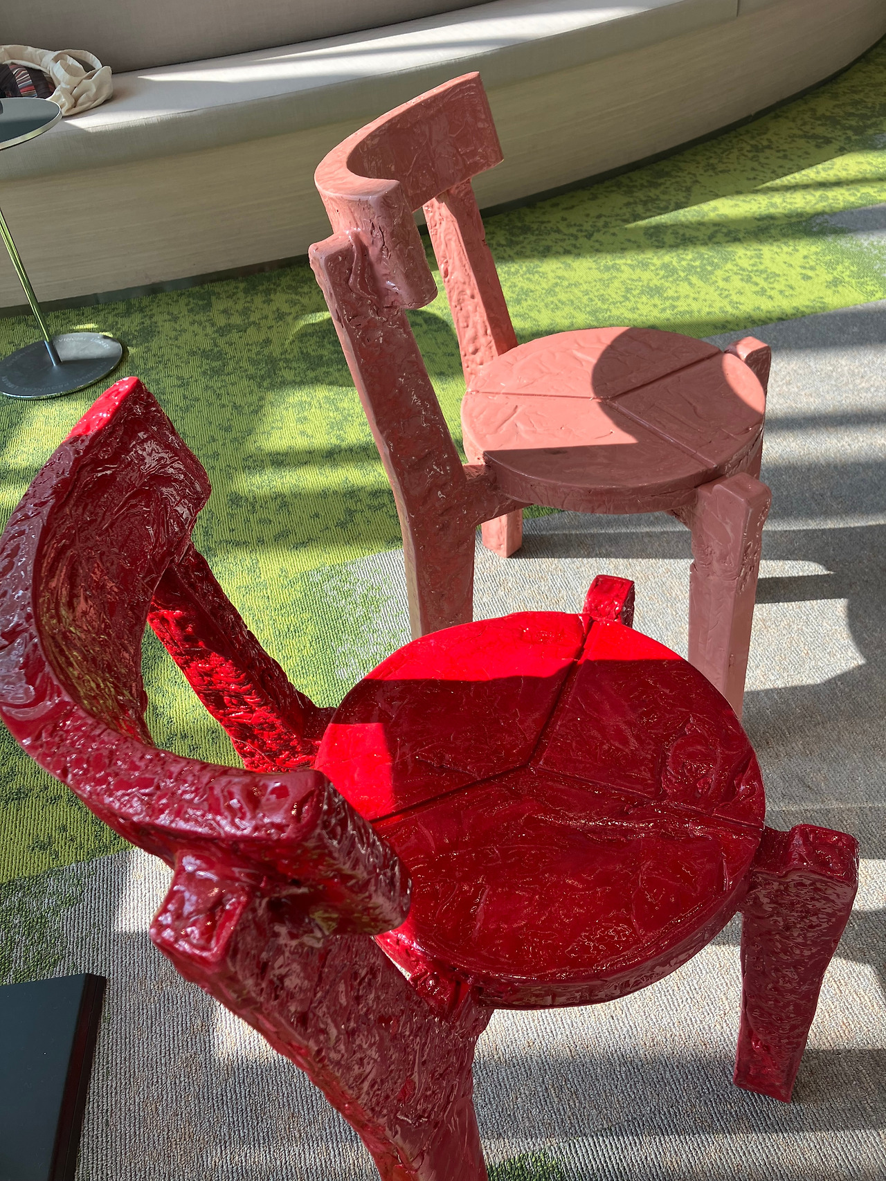 공공도서관이라고 하면 대개 경직된 분위기 속에 바른 자세로 앉아서 책을 보거나 공부를 하는 이들을 떠올리게 되는데, 경기도서관은 햇살이 그윽하게 비쳐드는 아름다운 갤러리같은 곳곳에서, 자유로운 표정과 자세로 책을 보는 이용자들마저 마치 멋진 작품 속 오브제처럼 다가옵니다. 도서관에 비치되어 있는 의자들조차 예술작품의 면모를 띠고 있어요. '친환경 도서관'답게 쓰레기를 재활용해 만든 의자가 시선을 끌고, 버려진 재활용 쓰레기가 새로운 가치를 얻는 공간이 창작자들에게 열려 있습니다. 위에서 말씀드린, 경기도서관을 초록숲처럼 만들어주고 있는 것도, 벽에 그림처럼 심어져 있는 '스칸디아 모스'덕분이에요. (이 이끼는 공기를 정화하고 소음을 줄여준다고 하네요)