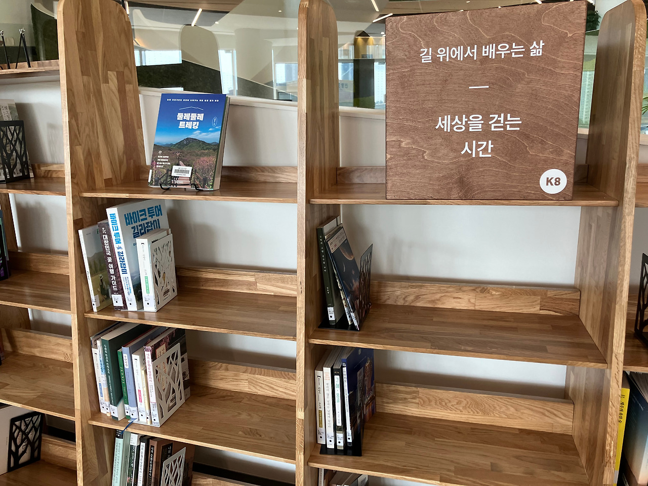 경기도서관에서 제 마음을 가장 사로잡았던 건, 도서의 종류를 구분해 놓은 방식이었어요. 보통 도서관에서는 문학파트, 역사철학 파트와 같이 도서를 분류해 놓잖아요. 하지만 경기도서관에서는 도서를 분류하는 데에도 문학적 고심을 들였다는 느낌을 받았어요. 예를 들어, 여행 서적 코너는 '길 위에서 배우는 삶-세상을 걷는 시간' 그리고 고전서적코너에는 '고전, 삶의 문장들-시간을 건너온 이야기, 여전히 현재인 책'이라는 문구가 표지판에 새겨져 있어요. 이 짧은 문구 자체만 해도 얼마나 아름답고도 훌륭한 문학적 표현인지요! 이렇게 정성스러운 안내판들이 층층마다 손으로 셀 수 없을 정도로 있으니, 요 녀석들만 찾아다녀도 몇 시간이 훌쩍 지나갈 듯합니다.