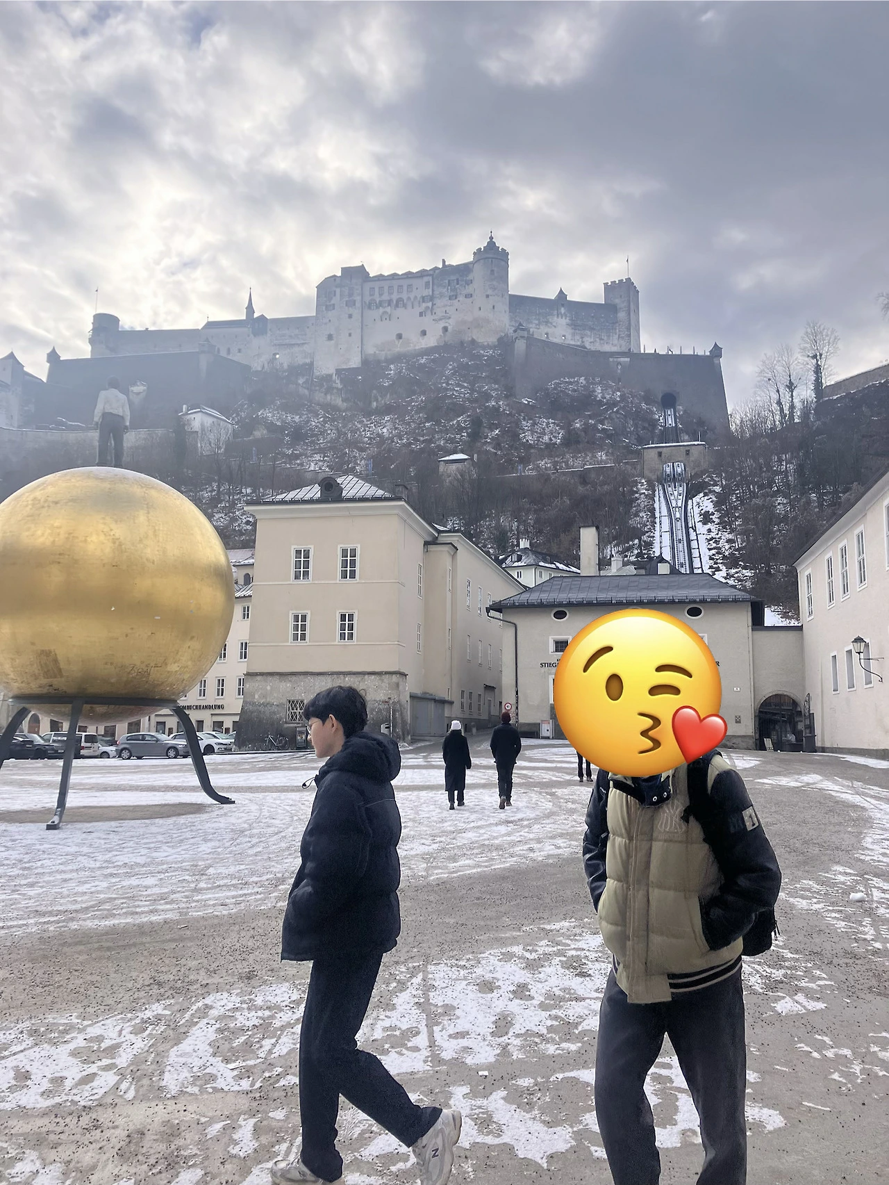 그러나 나의 기대는 얼마지 않아 헛된 바람이 되고야 말았다. 가는 날이 장날이라고, 케이블카가 임시 운행 정지 중이었던 것이다. (잘츠부르크는 겨울을 피해 가야 할 도시인 걸까. 뒤이어 방문한 미라벨 정원 후문도 폐쇄되어 있었으니..) 케이블카 선로가 바로 눈앞으로 보이거늘, 손에 잡힐 듯한데도 마음을 접고 돌아서야 하는 상황이 억울하게 느껴졌다. 성까지 오르겠노라 마음먹은 터라 그냥 되돌아갈 수는 없는 노릇이었다. 나와 짝꿍은 걸어서 올라가자고 뜻을 모았다. 그 순간 아이들의 동공은 지진이 난 듯 흔들렸지만, 그간에 다진 '꼬드김 잔꾀'를 최대한으로 발휘해 결국 온 가족이 도보로 성에 오르게 되었다.