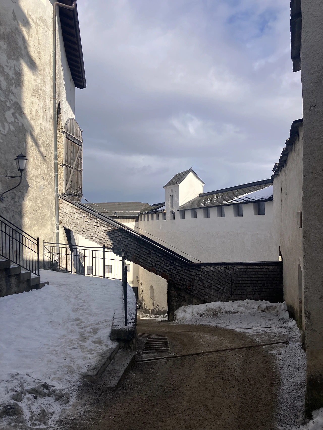 경사길을 본격적으로 오르기 전부터 이미 '다리 아프다'를 시연하는 딸내미의 팔짱을 꼭 끼고 발걸음을 떼기 시작했다. 그렇게 우리는 케이블카로 채 몇 분이 되지 않을 거리를 삼십 분 가까이 걸어서 올랐다. 소소한 이야기들을 주고받으며, 미처 보지 못했을 풍경을 눈 안에 담으며. 마침내 성의 입구에 도착했을 즈음에는, 오히려 운행 정지된 케이블카가 우리 여행을 더 풍성히 해주고 있어 다행이라는 생각마저 들었다. 언덕 위 외딴섬처럼 자리하고 있는 호엔잘츠부르크 성은, 평상시에 이용되었던 주 거주지라기보다는 당시(신성로마제국) 대주교의 권위를 상징하는 요새이자, 전쟁 시 피난처로 활용된 곳이라고 한다. 성 입구로 들어서니 중세 유럽의 작은 마을 하나를 옮겨다 놓은 듯한 풍경이 펼쳐졌다.