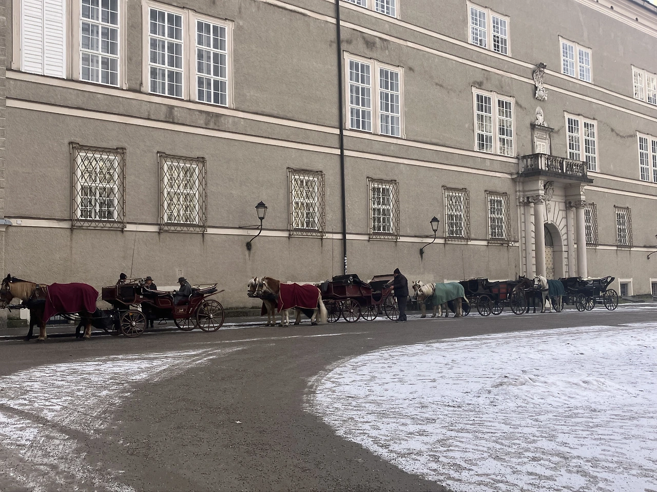 잘츠부르크 대성당 앞에 늘어 선 마차들