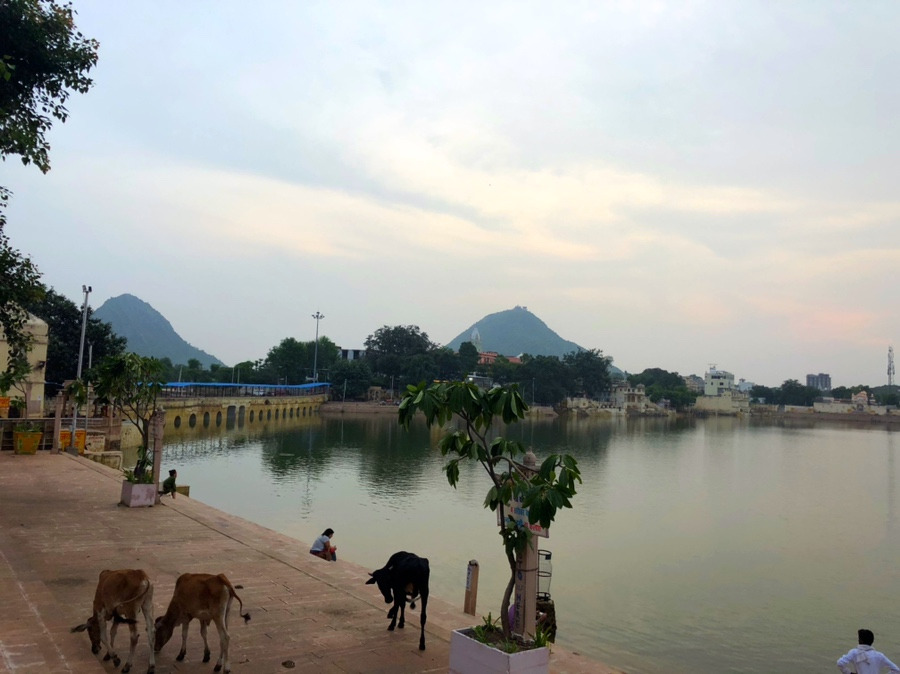 해가 질 무렵의 푸쉬카르 호수는 참 예쁘다. 세상에서 가장 오래된 건물들 사이로 해가 내려가며 호수를 붉게 물들인다. 이때 주민들과 여행자들은 모두 선셋 포인트로 모여들기 시작하고, 커다란 나무 밑에서 경쾌한 타악기 소리가 들리기 시작한다. 히피들이 하나둘씩 모여 불을 흔들며 춤을 추는 불 쇼를 하기도 하고 그저 음악에 몸을 맡기고 흔드는 여행자들이 있는가 하면, 그냥 호수의 가트에 앉아, 지는 해를 바라보는 사람들도 있다.