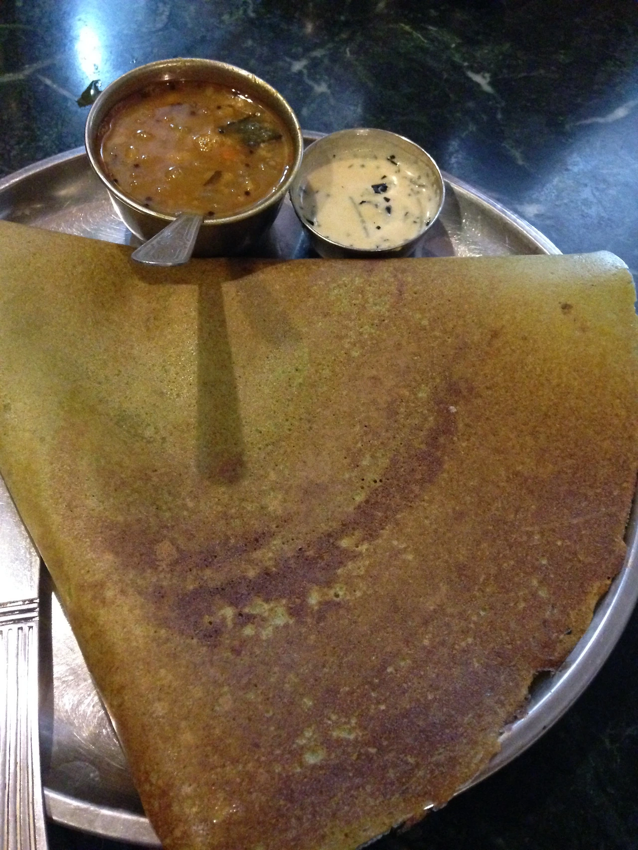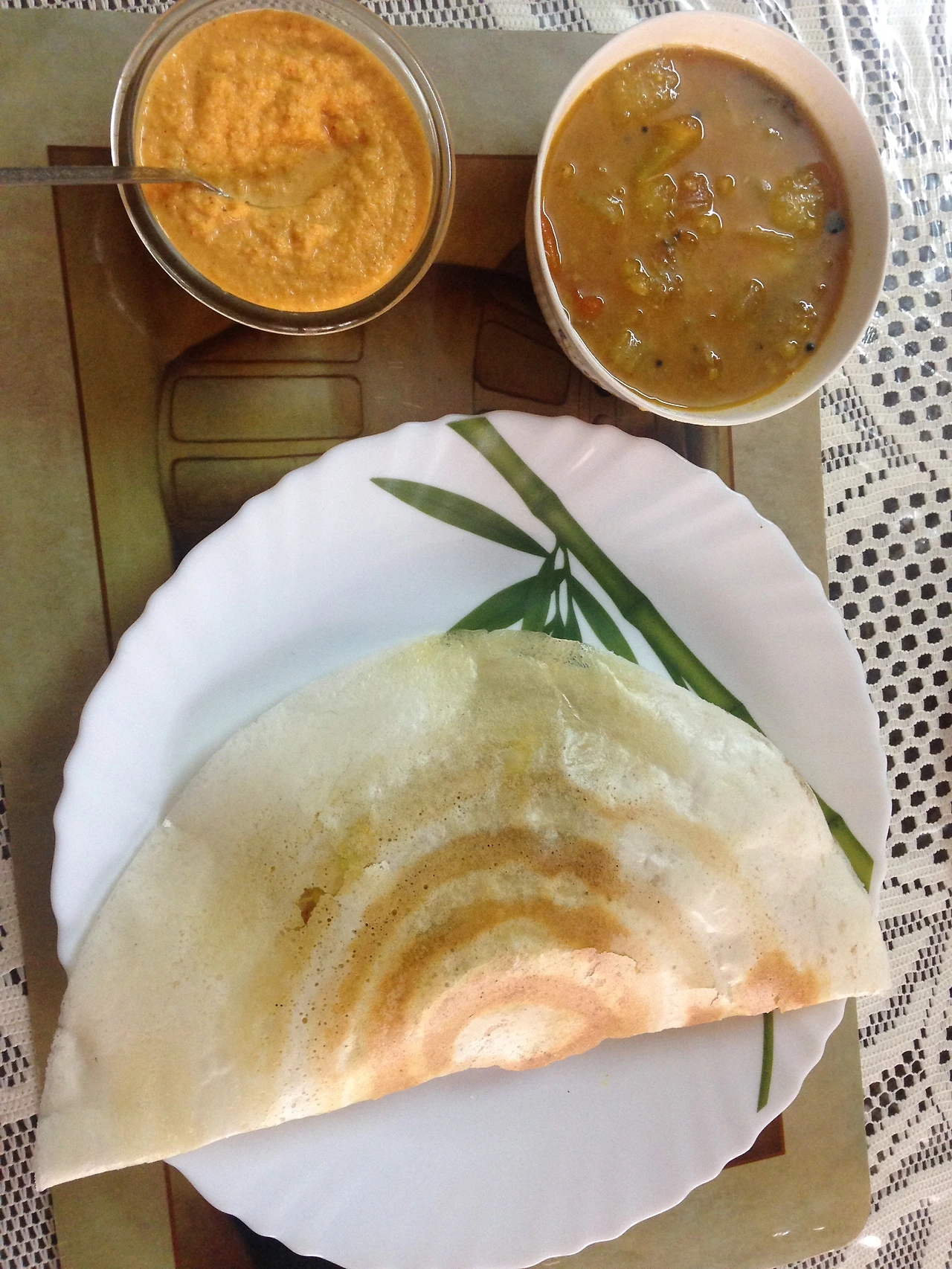 가정에서 만드는 마살라 도사는 역시나 식당에서 파는 것과는 달랐다. 혼자 먹기에 적당한 아담한 크기에 기름을 적게 넣어서 더 바삭하고 느끼하지 않은 마살라 도사였다. 코코넛을 직접 갈아 향신료와 함께 갈아 만든 코코넛 처트니는 신선했고 알맞은 양념이 우러난 뜨거운 야채 삼바 국물은 아주 시원했다. 일반 식당에서 먹는 마살라 도사는 크기가 엄청나고 기름지고 맵기까지해서 나도 모르게 맛에 이끌려 다 먹어버리고 나면 항상 속이 불편한 느낌이었다.