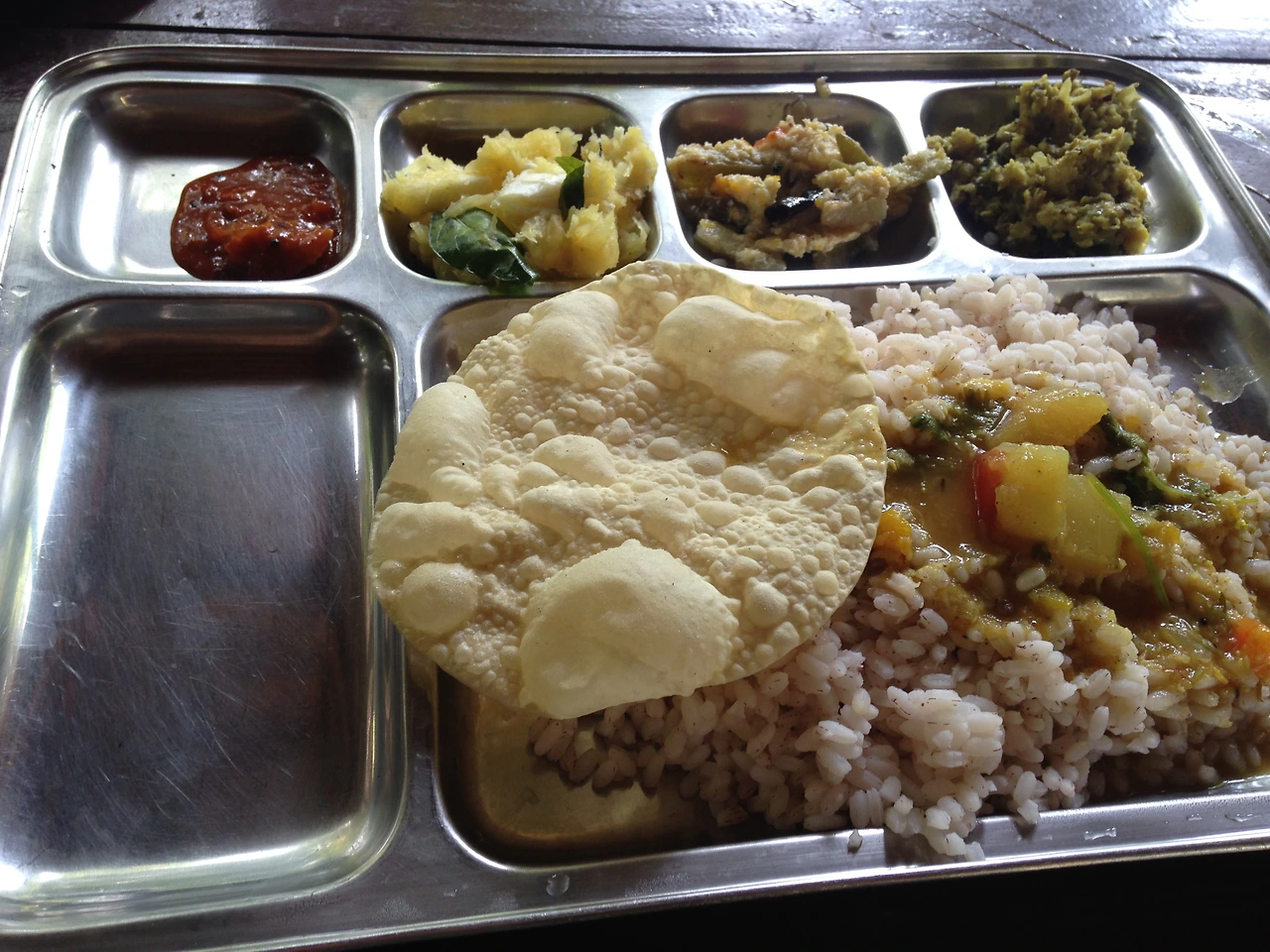 보통 바나나 잎에 차려져 나오는 남인도의 정식인 밀즈에 빠져서는 안 되는 베지 띠알(커리). 채소가 흐물거릴 때까지 푹 끓여서 그런지 참 깊은 맛이 났다. 도시락에 음식을 담아 주셔서 홈스테이 가족들과 함께 먹었다.