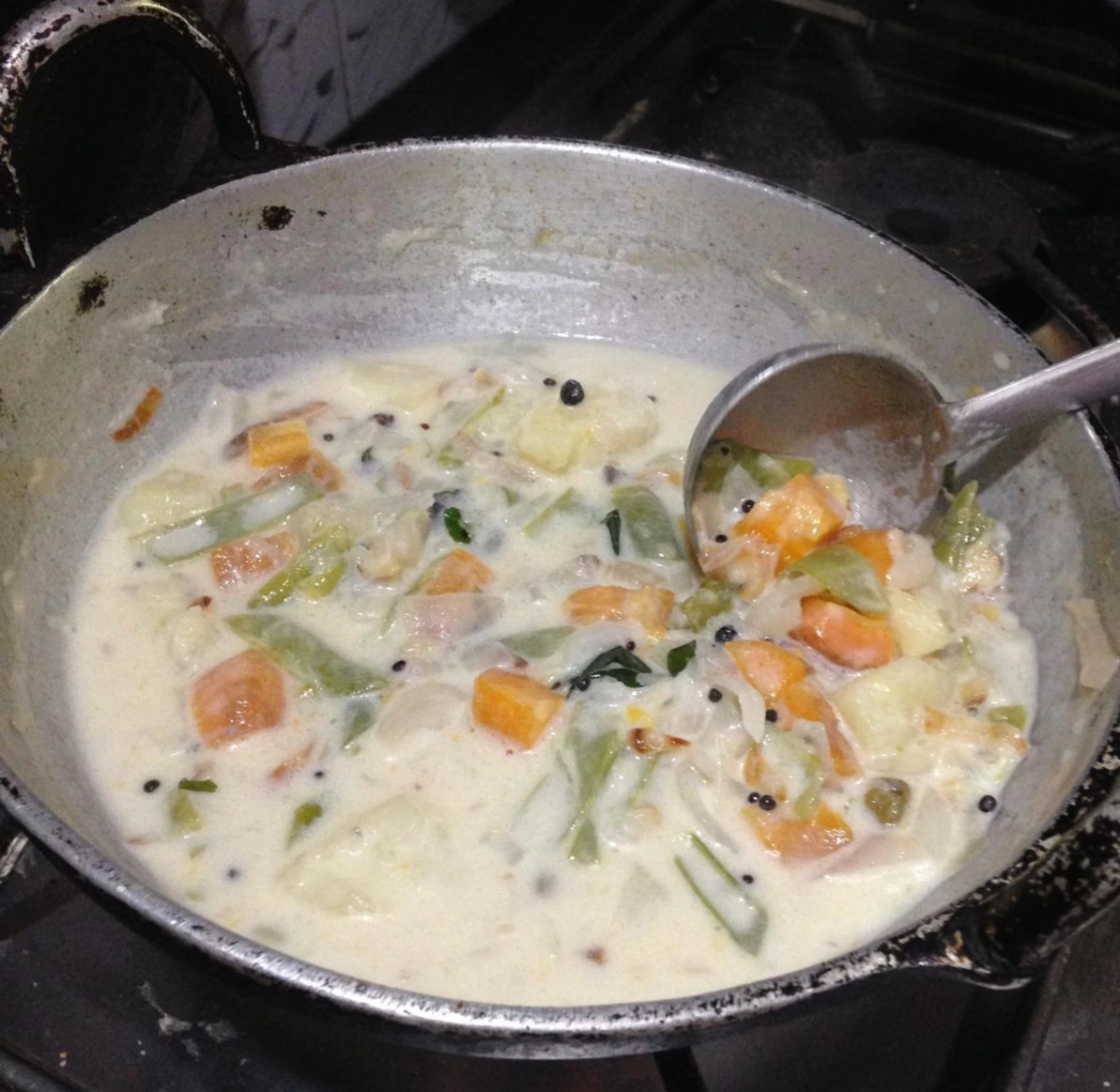 잘게 부슨 코코넛과 코코넛 밀크를 또 한 번 넣어 만들어서 아주 부드러운 맛의 베지 아비얄과 내가 가장 좋아하는 채소 중의 하나인 시금치를 넣어 볶은 시금치 토란을 배우고는 통통한 남인도의 쌀밥과 함께 먹었다. 많이 먹는 것을 조금 부끄러워하는 내가, 너무 맛있어서 재빨리 먹어 버리고는 또 한 접시를 청해서 먹기까지 했다.
