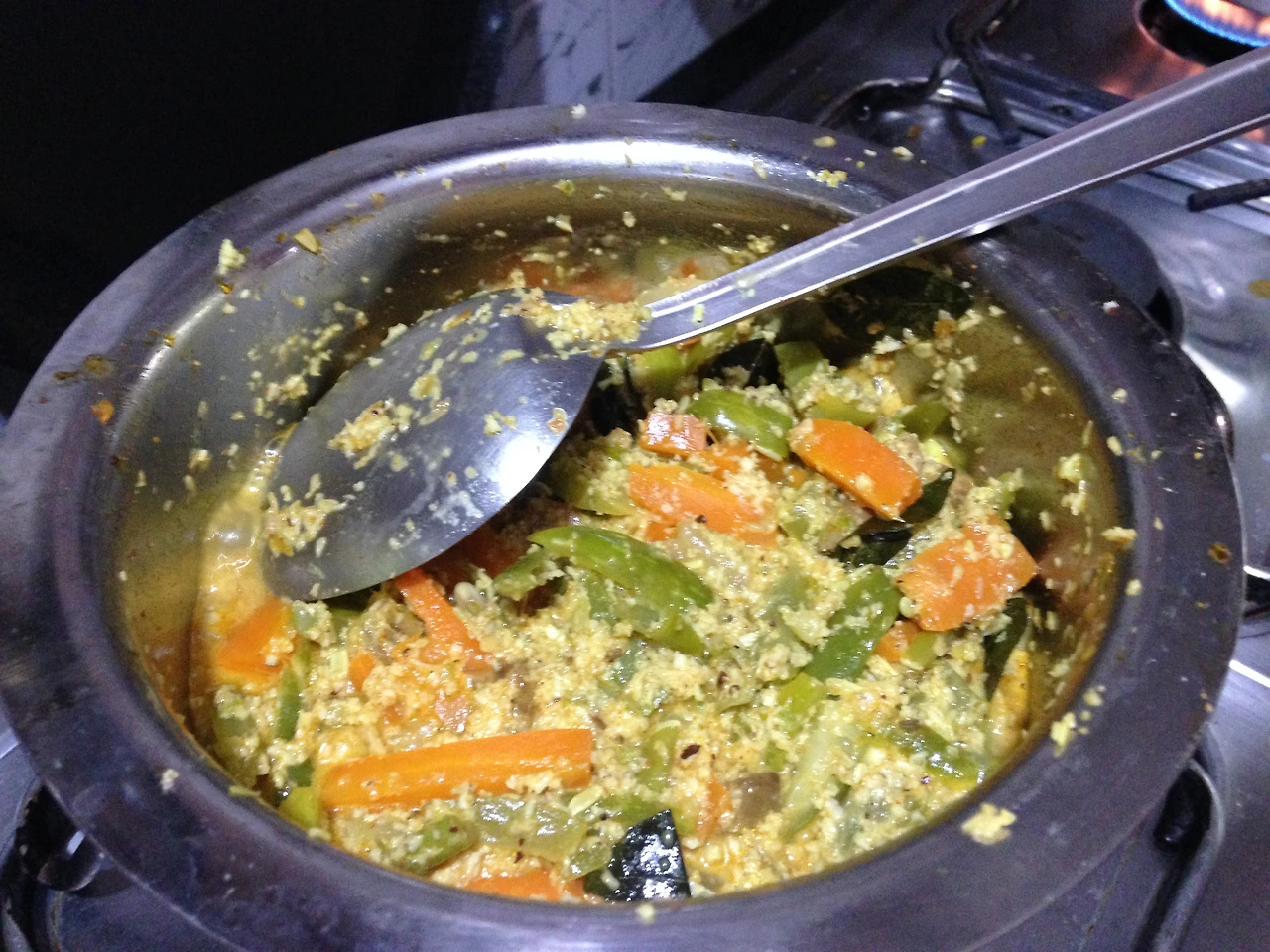 남인도를 대표하는 아침 식사를 배운 후에 본격적으로 배운 남인도의 밀즈 (우리나라의 백반 같은 정식)에 들어가는 기본 반찬을 배웠다. 코코넛이 많이 나는 곳이라 거의 대부분의 음식에는 코코넛이 들어간다.
