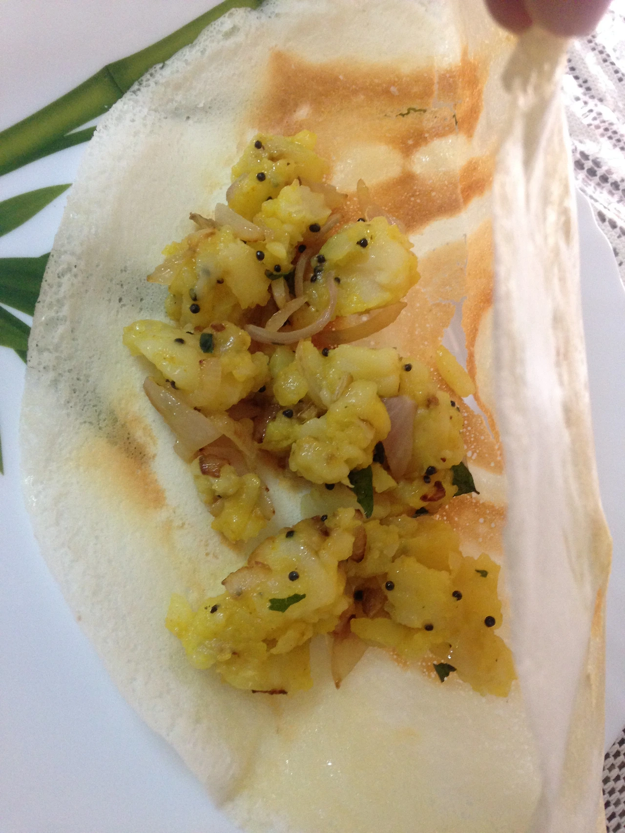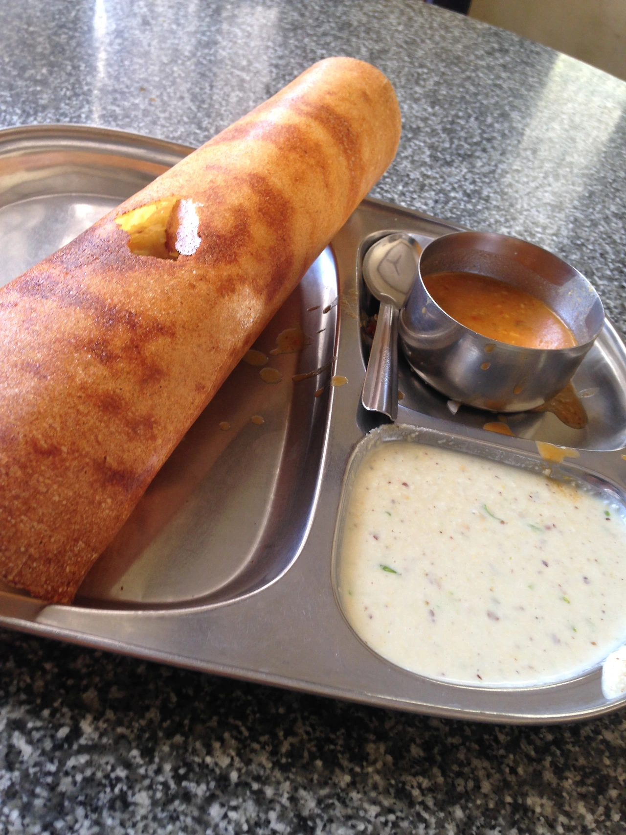 쌀가루와 렌틸 가루를 갈아서 발효시킨 후 기름을 두르지 않은 팬에 얇게 부친 후에 기름을 몇 방울 떨어 뜨려 바삭하게 굽고 안에 향신료와 양파를 넣고 볶음 감자를 듬뿍 넣어 반으로 접어 준다. 그리고 코코넛을 갈아서 향신료를 넣어 만든 코코넛 처트니와 야채를 넣고 푹 고은 수프에 삶은 렌틸콩과 향신료를 넣고 한동안 더 끓여 만든 삼바와 함께 먹는다.