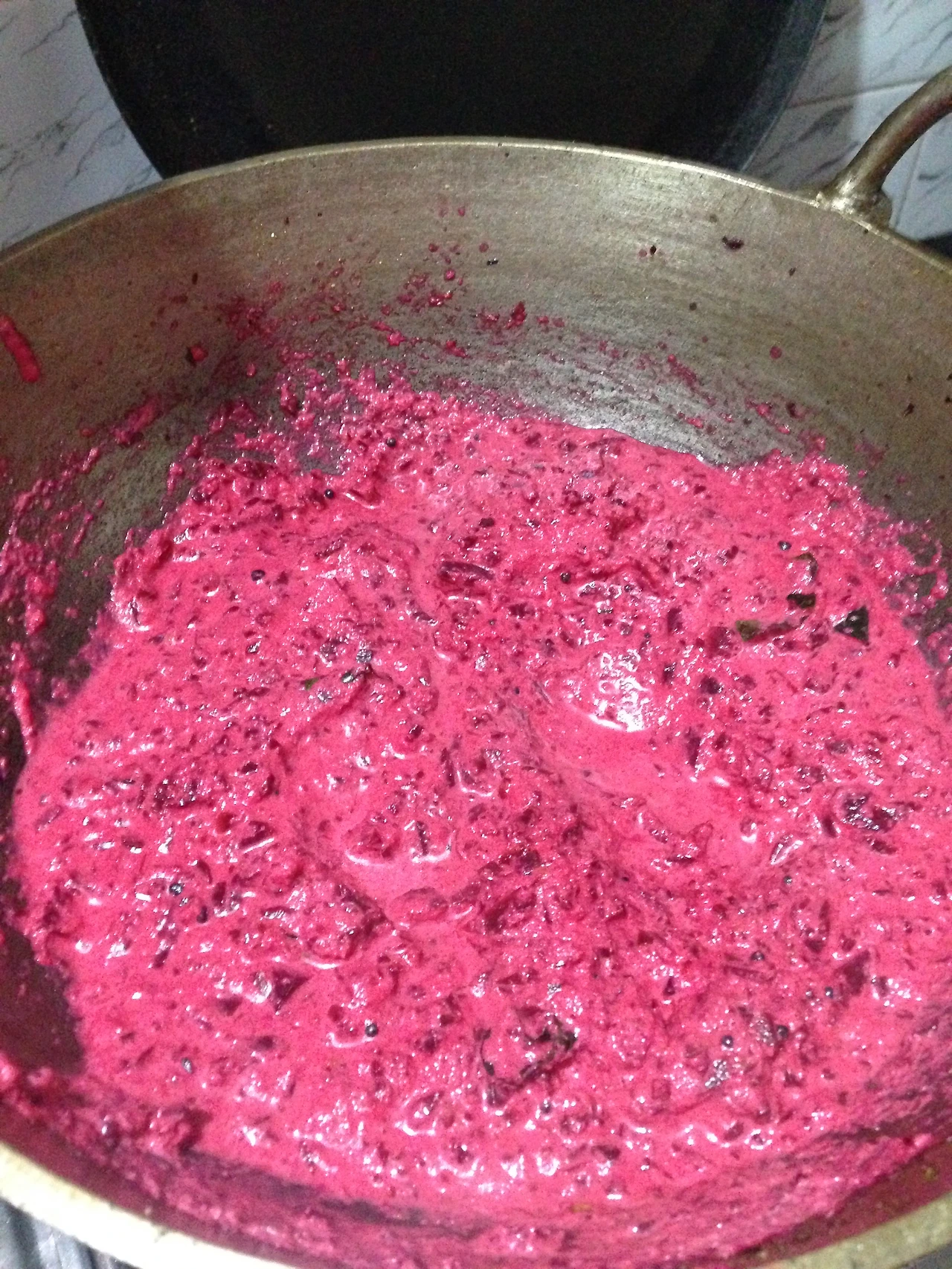 비트루트 키처리, 색깔이 참 곱다. 빨간 무인 비트루트를 향신료를 넣고 볶다가 요거트를 넣어 끓인다. 비건일 경우에는 코코넛이나 캐슈넛으로 요거트를 만들어 넣으면 된다고 한다. 나도 비건인 까닭에 이 아름다운 음식은 함께 묵는 여행자들에게 주었다.