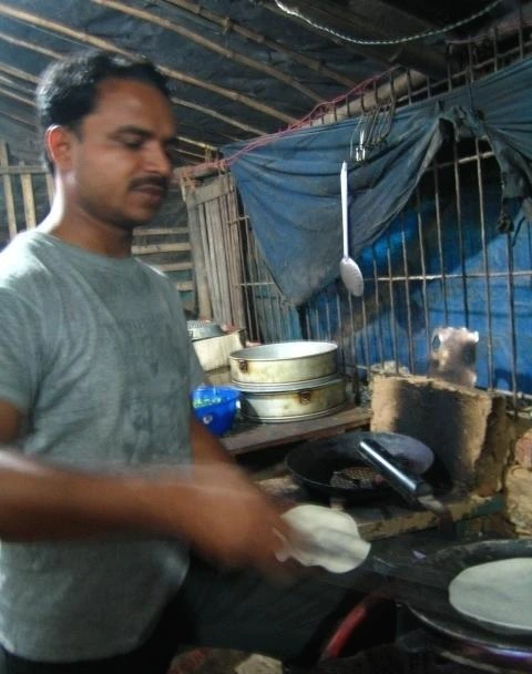짜파티를 굽고 있는 모하메드