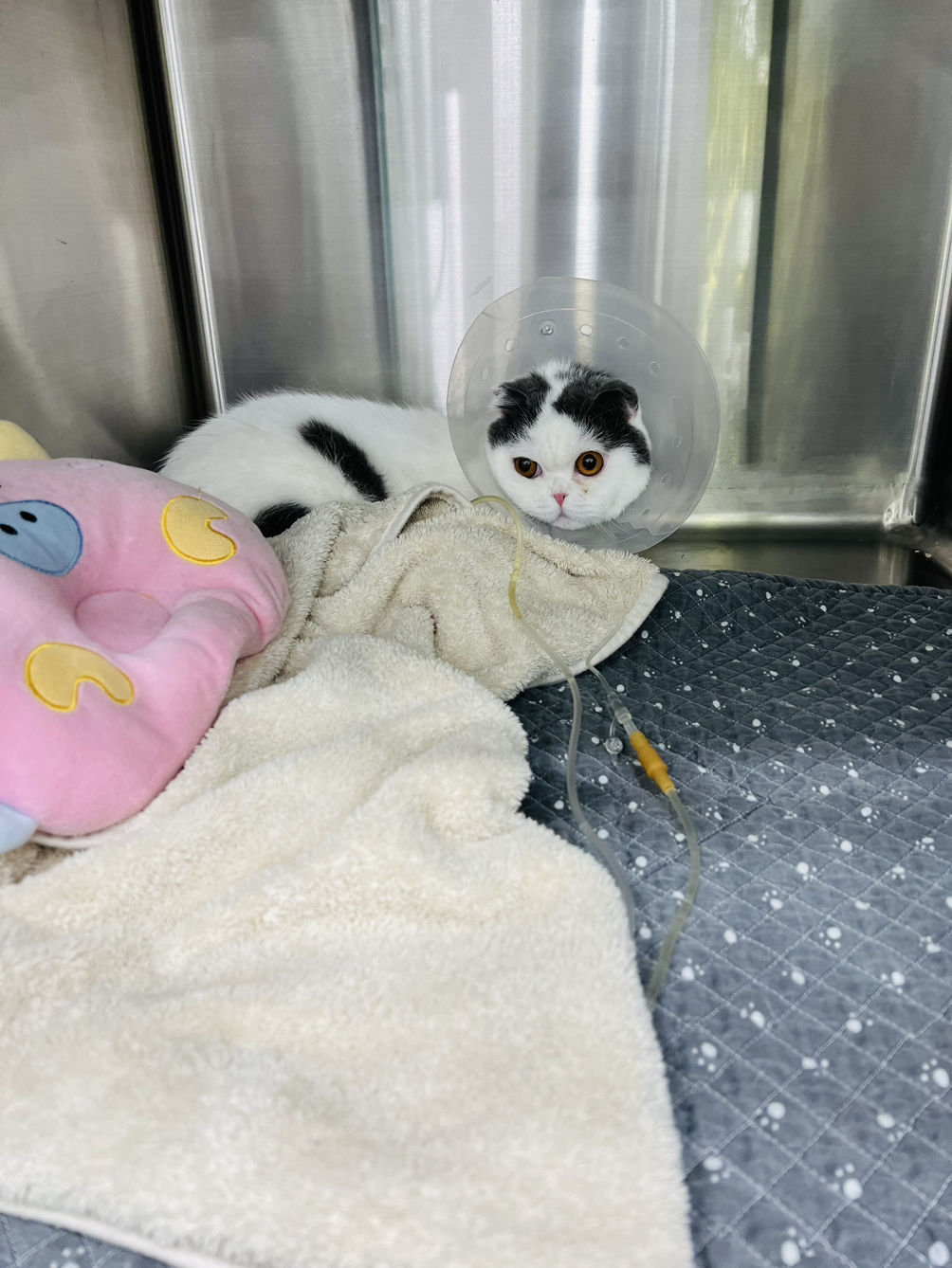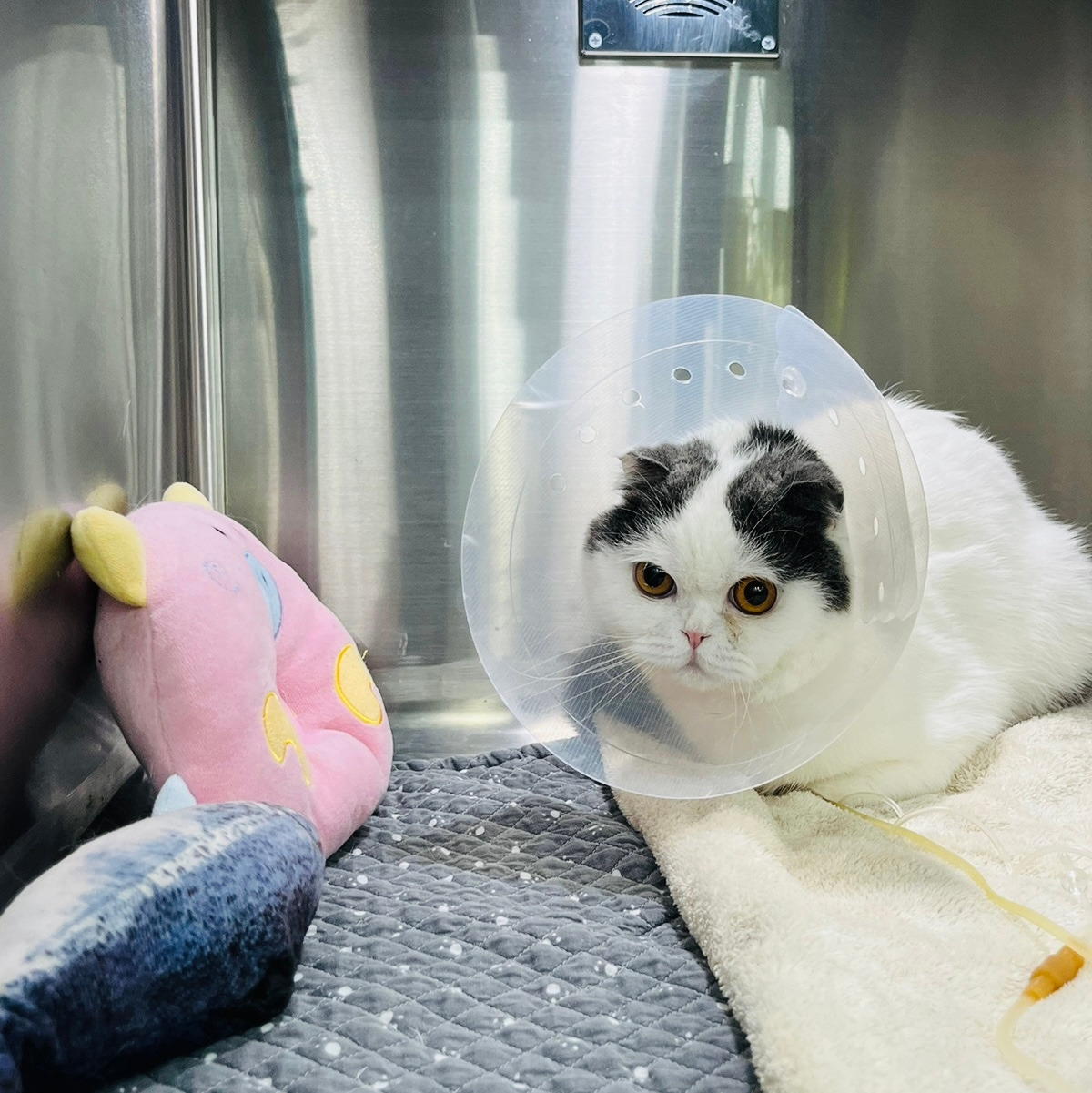 처음 입원하던 때를 떠올리며 망고의 두 번째 카테터 장착을 기다리니 기분이 이상했다. 처음엔 눈물콧물 다 빼며 울던 나였는데, 이번엔 오히려 차분한 느낌이었다. 한 번 겪어봐서인지, 아니면 어느 정도의 각오를 해서인지 정확히 알 수는 없었지만 첫 입원 때처럼 아무 생각도 없이 눈물부터 나오진 않았다. 물론 마음은 똑같이 아팠지만 울기만 한다고 해서 달라질 게 없다는 것을 깨달은 뒤였기에 차분하게 그동안의 상황을 되짚어보았다. 내가 놓친 게 무엇이었는지, 언제부터 재발 가능성이 보였던 건지, 내가 케어한 방법들 중에 부족한 점이 무엇이었는지 등을 찬찬히 생각해 보며 시간을 보냈다. 이번에도 30여분 정도가 지난 후 카테터 장착이 완료되었고 늦은 밤이라 잠깐의 면회가 허락되었다. 또다시 카테터를 꽂고 망고가 세상에서 제일 싫어하는 플라스틱 넥카라를 한 모습을 보니 눈물이 왈칵 쏟아질 것 같았지만 애써 참아내며 망고를 쓰다듬어주었다. ‘괜찮아. 금방 괜찮아질 거야. 우리 망고 치료 잘 받고 있어. 엄마가 망고 버리는 거 아니야, 알지? 엄마 내일 퇴근하자마자 바로 올게.‘ 큰 눈망울에 눈물이 한가득 고여있는 이 작은 고양이가 내 말을 알아듣는 건지 아닌 지는 모르지만, 혹여라도 입원장에 있는 것이 마치 또 한 번 버림받았다고 느끼게 될까 봐 그게 참 마음이 쓰여 구구절절 설명할 수밖에 없었다. 난 널 버리는 게 아니라고. 지난번처럼 엄마가 매일 올 테니 걱정 말라고 말이다.